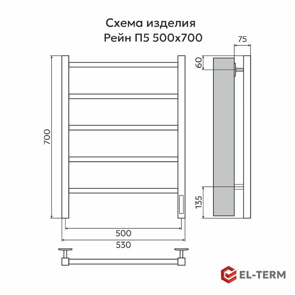 Полотенцесушитель электрический черный EL-TERM (Эл-Терм) рейн 500х700 мм, с терморегулятором: сравнение цен, характеристики, фото, актуальное наличие и цены.