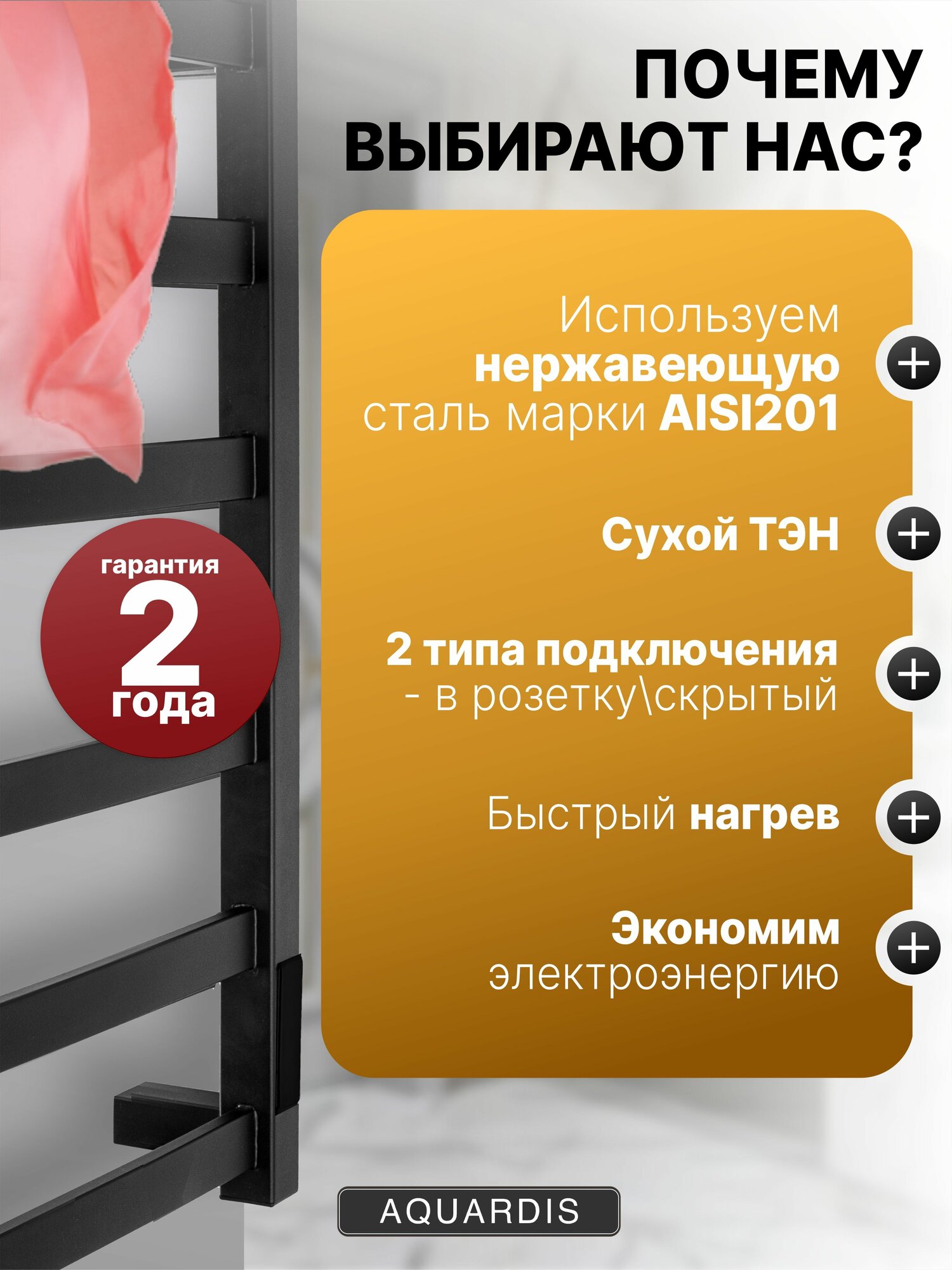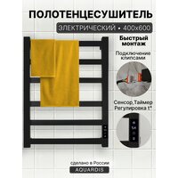 Купить Полотенцесушитель электрический черный матовый с терморегулятором и таймером 40х60 см форма Лесенка AQUARDIS с доставкой по всей России.