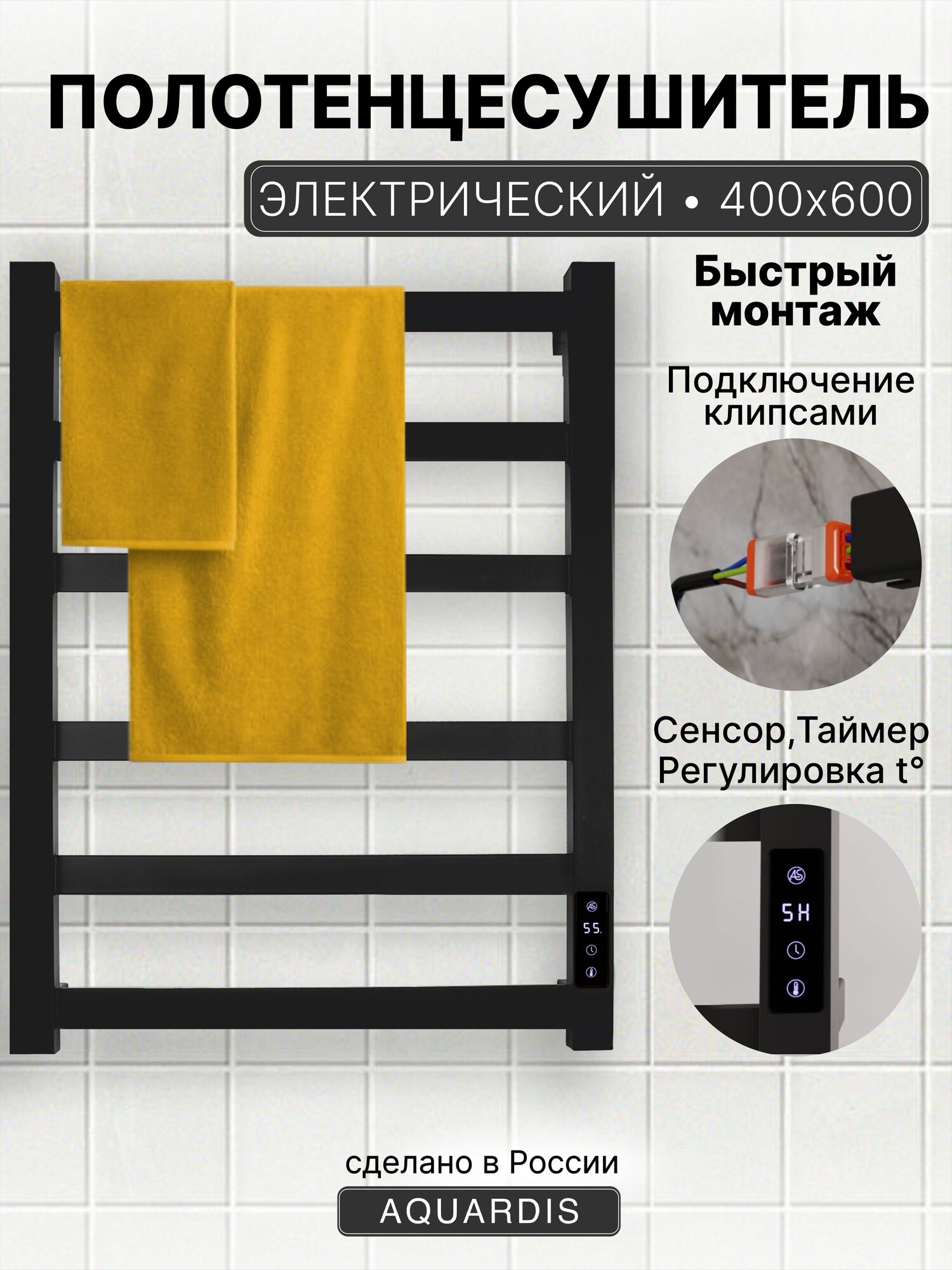 Полотенцесушитель электрический черный матовый с терморегулятором и таймером 40х60 см форма Лесенка AQUARDIS: сравнение цен, характеристики, фото, актуальное наличие и цены.