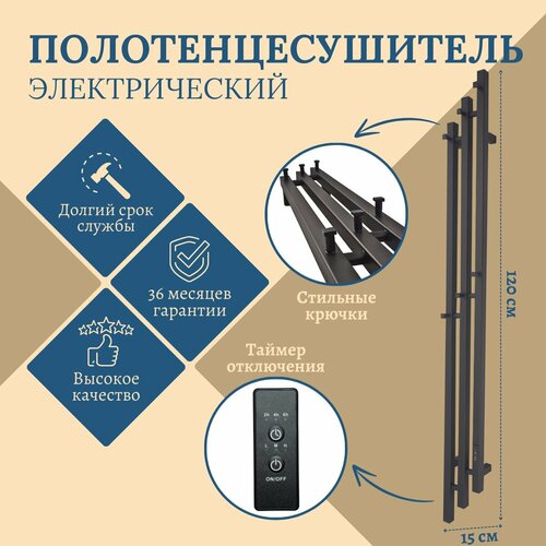 Купить Полотенцесушитель электрический чёрный с терморегулятором 120х16 см, Маргроид / модель Cascade / квадратная труба с доставкой по всей России.