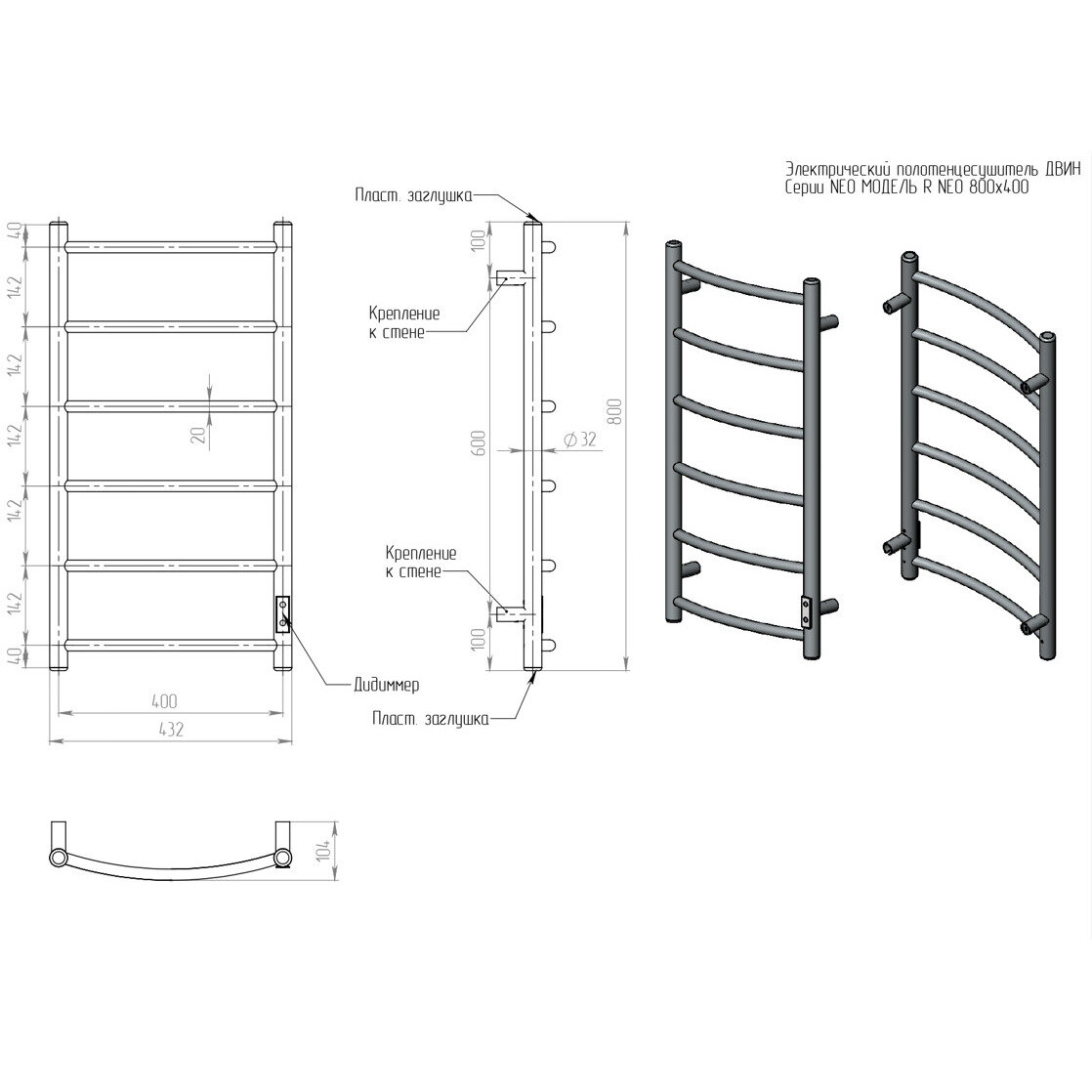 Полотенцесушитель электрический Двин (Dveen) R neo 80х40 см, без полки, К диммер черный матовый: сравнение цен, характеристики, фото, актуальное наличие и цены.