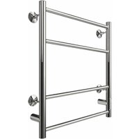 Цвет: хром, Форма: лесенка, Материал: нержавеющая сталь, Ширина, см: 43, Высота, см: 60, Глубина, см: 8.5, Длина, см: 8.5, Монтаж: подвесной, Подключение: скрытое электрическое соединение, электропровод с вилкой, Направление подключения: правое, левое, возможность выбора, Количество секций: 4, Площадь обогрева, м2: 3.4, Мощность, Вт: 300, Напряжение, В: 220, Теплоотдача, Вт: 340, Время нагрева, мин: 30, Макс. температура теплоносителя, C: 60, Теплоноситель: сухой, Тип шва: электросварный, Поворотный: нет, Автоотключение при нагреве: есть, Электровыключатель: есть, Терморегулятор: есть, Дополнительные функции: Электровыключатель, Терморегулятор, Оснащение: крепления, световой индикатор, нагревательный кабель