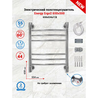 Купить Полотенцесушитель электрический Energy Ergo2 650×500, цвет хром, тип «лесенка», скрытое/наружное подключение с доставкой по всей России.