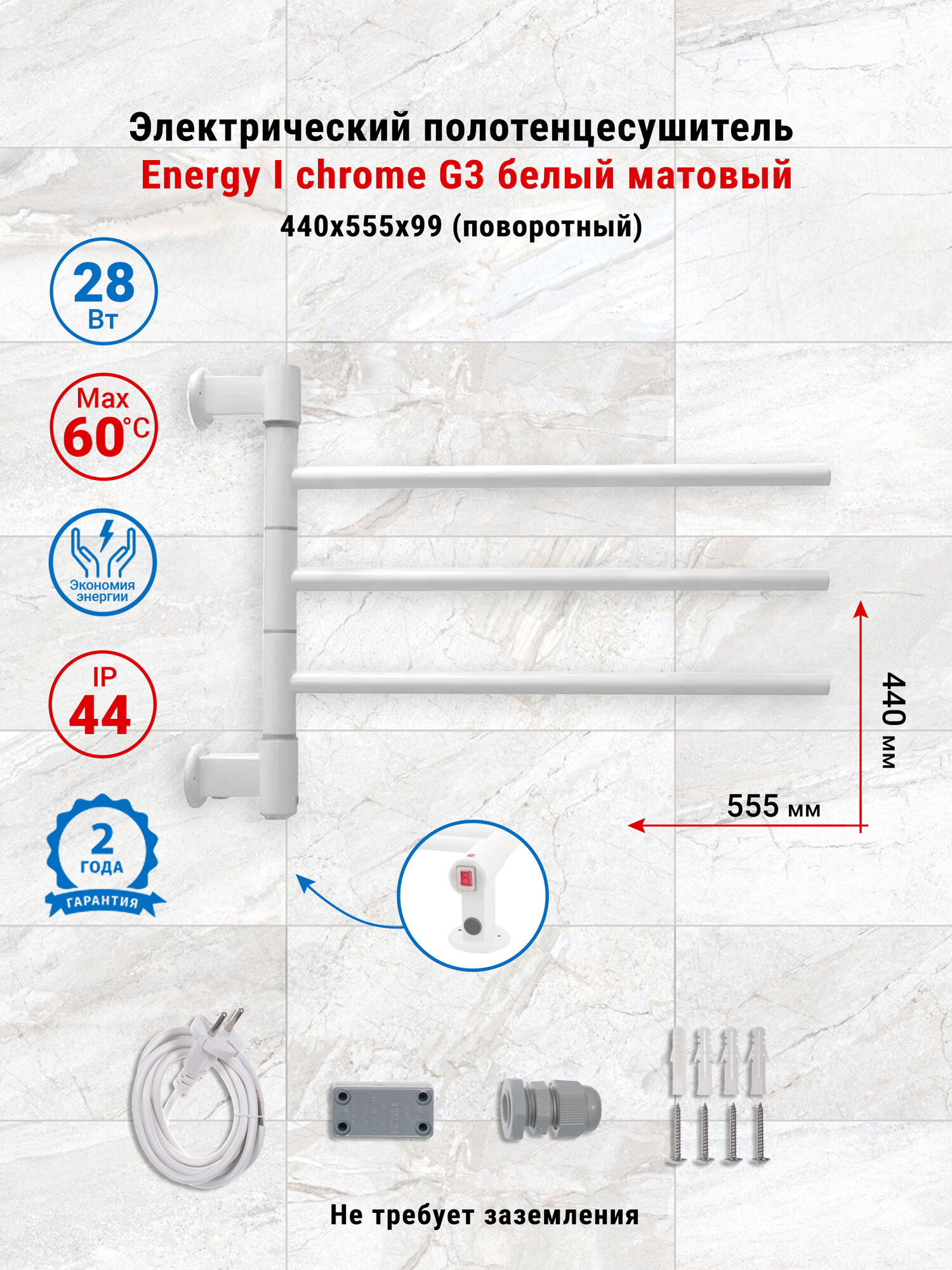 Полотенцесушитель электрический Energy I — G3 белый матовый, поворотные секции, скрытое/наружное подключение: сравнение цен, характеристики, фото, актуальное наличие и цены.