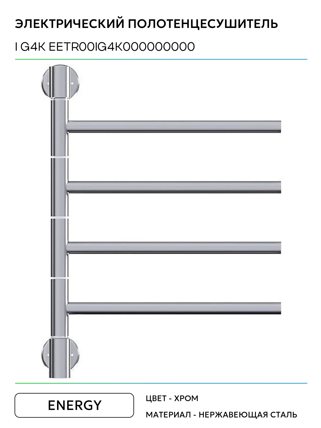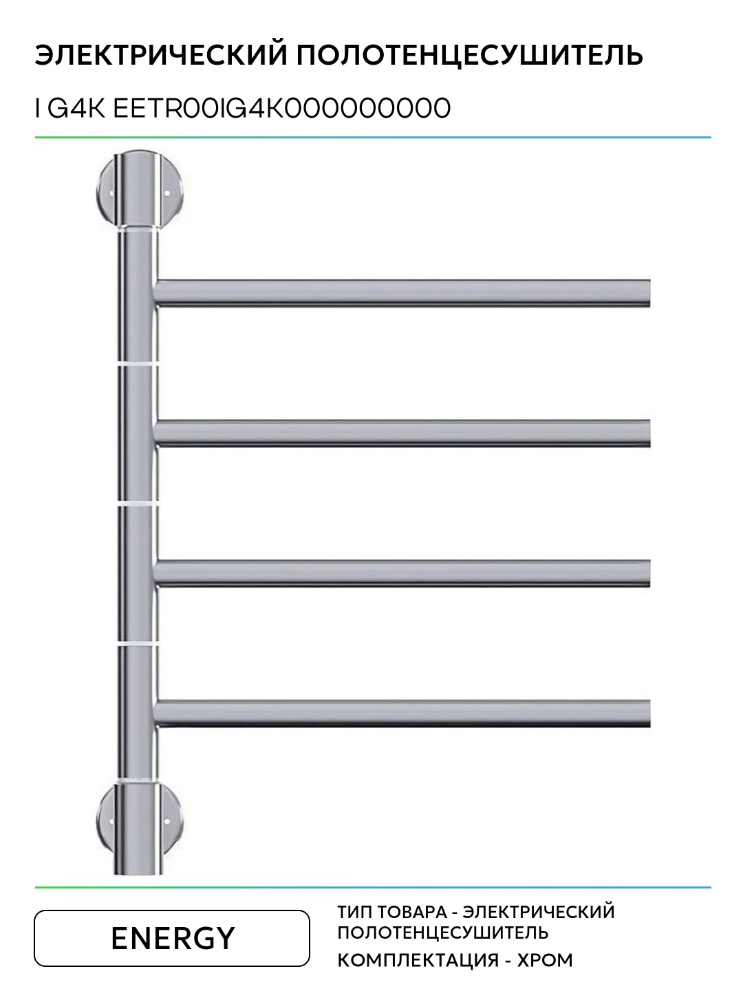 Электрический полотенцесушитель Energy I G4K EETR00IG4K000000000 Хром нержавеющая сталь: сравнение цен, характеристики, фото, актуальное наличие и цены.