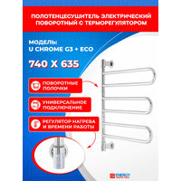 Купить Полотенцесушитель электрический Energy U chrome G3 + ECO1 поворотный цвет хром, скрытое/наружное подключение с доставкой по всей России.