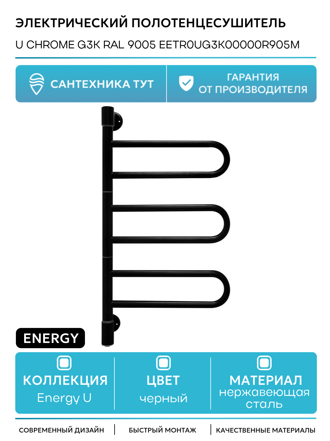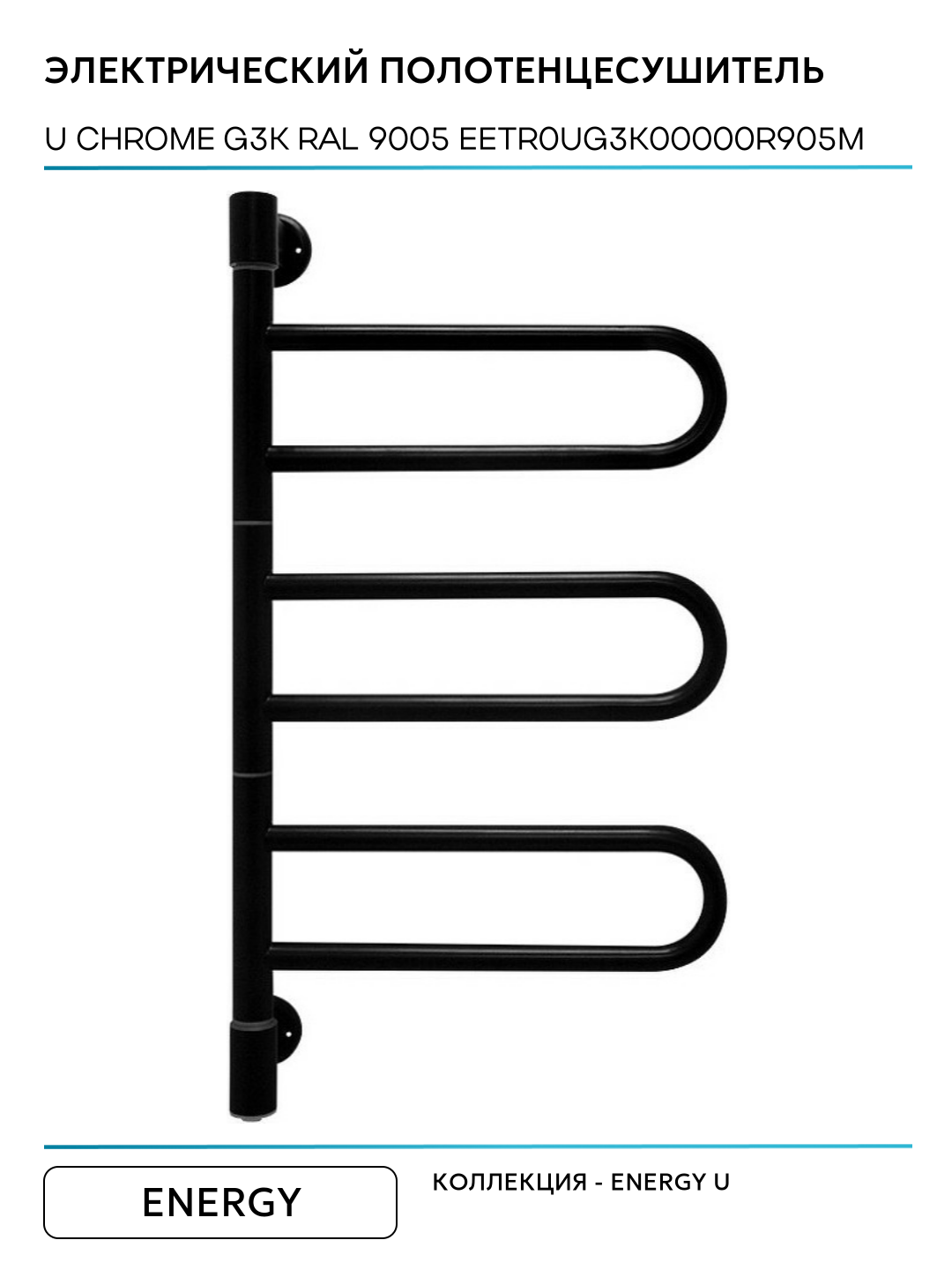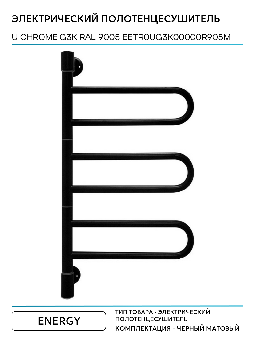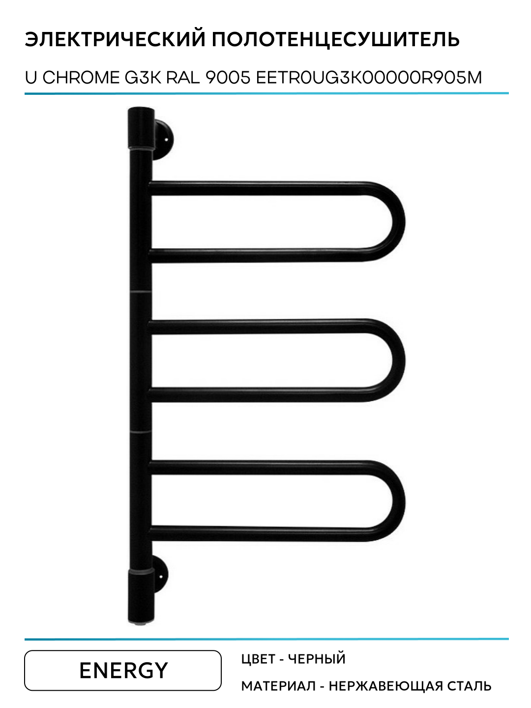Электрический полотенцесушитель Energy U chrome G3K RAL 9005 EETR0UG3K00000R905M Черный матовый нержавеющая сталь: сравнение цен, характеристики, фото, актуальное наличие и цены.