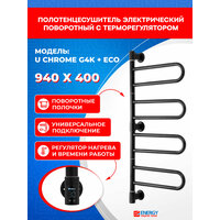 Полотенцесушитель электрический Energy U-G4K + ECO 2 черный матовый, поворотный, скрытое/наружное подключение