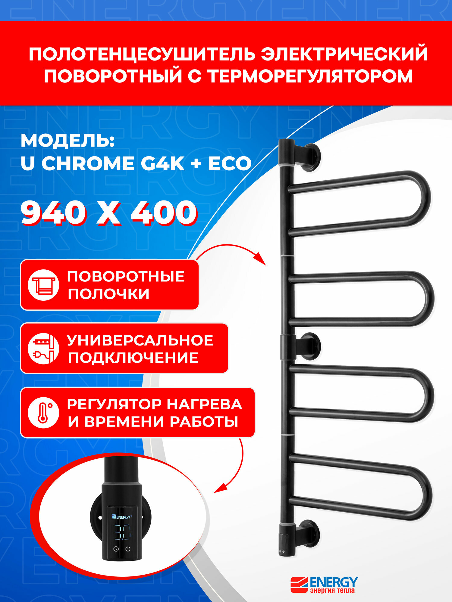 Полотенцесушитель электрический Energy U-G4K + ECO 2 черный матовый, поворотный, скрытое/наружное подключение: сравнение цен, характеристики, фото, актуальное наличие и цены.