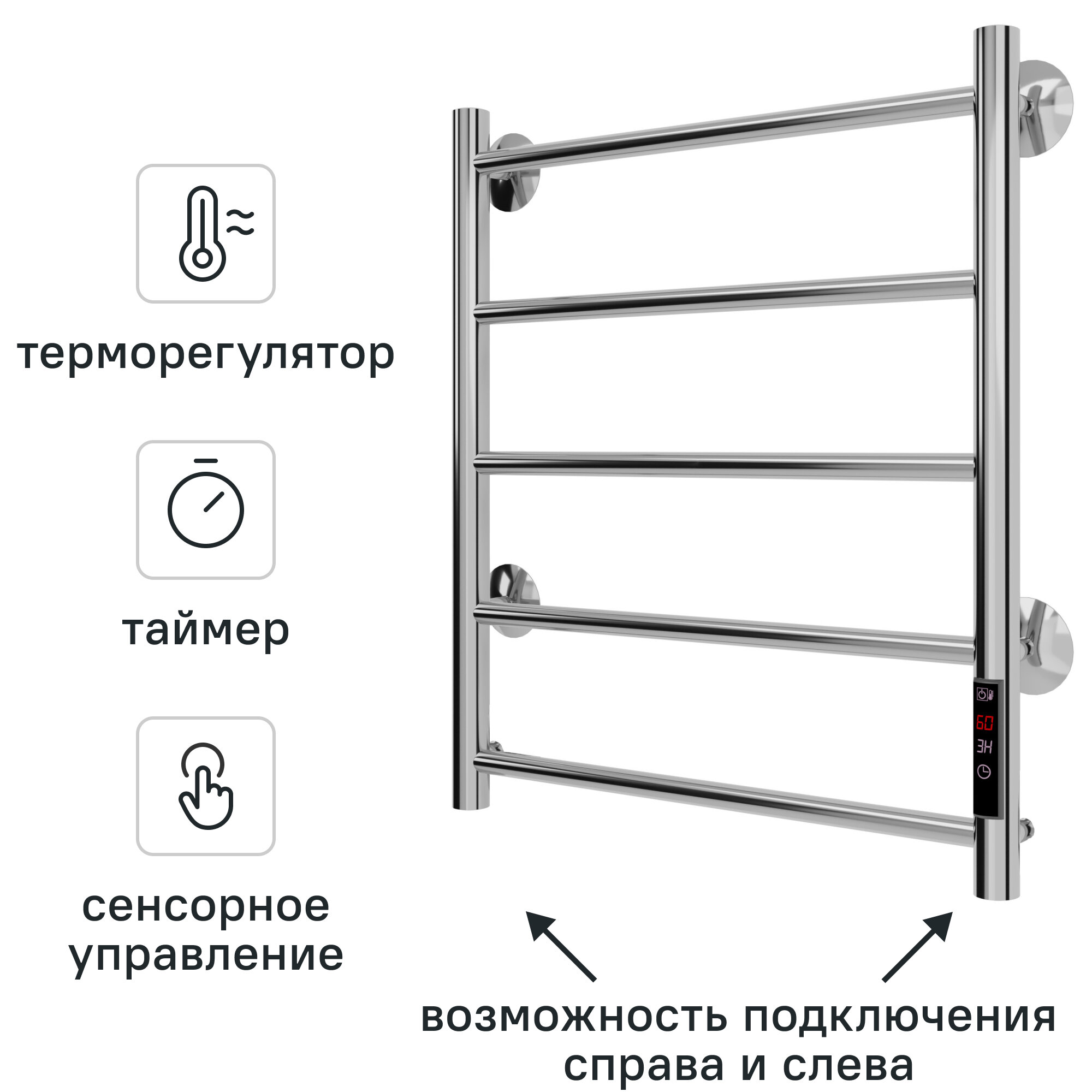 Купить Полотенцесушитель электрический Equation 450×600 мм 100 Вт с терморегулятором лесенка цвет хром с доставкой по всей России.