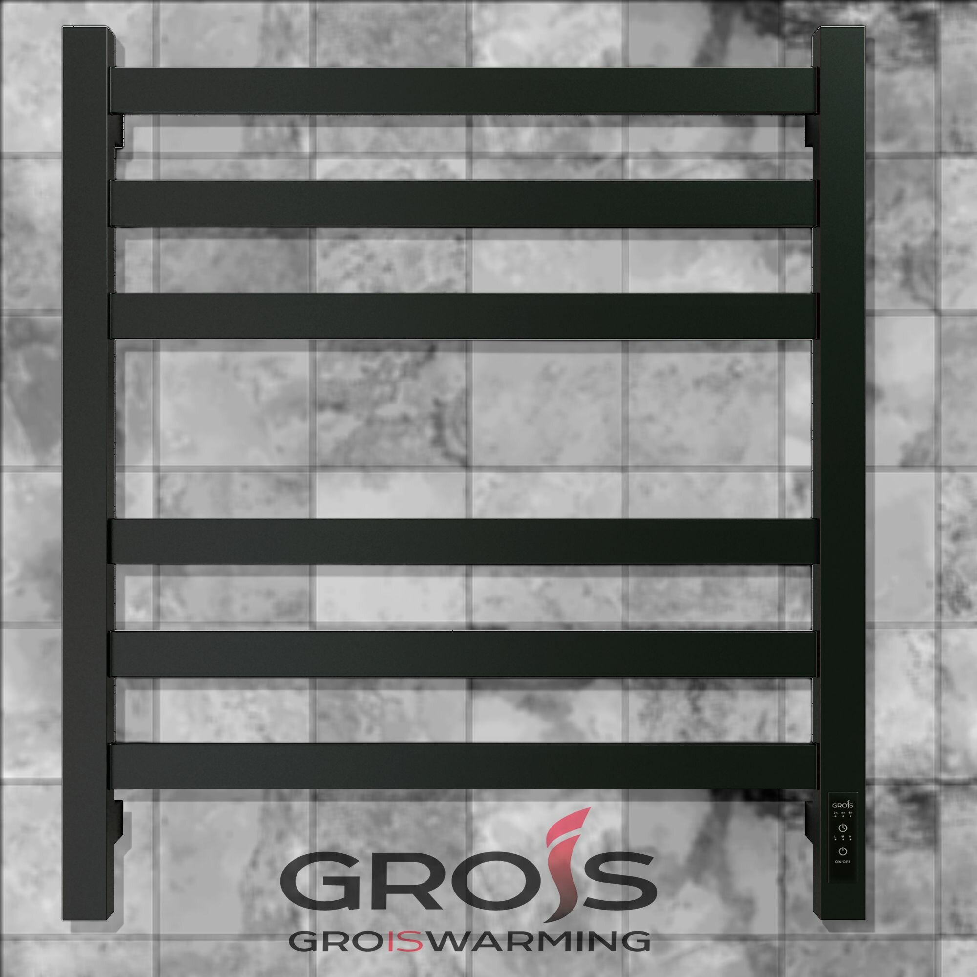 Полотенцесушитель Электрический GROIS Bruno GR-121 400х600мм черный с терморегулятором Лесенка