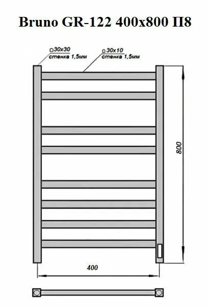 Полотенцесушитель электрический Bruno GR-122 400х800 П8 white U универсальное подключение (левый/правый): сравнение цен, характеристики, фото, актуальное наличие и цены.