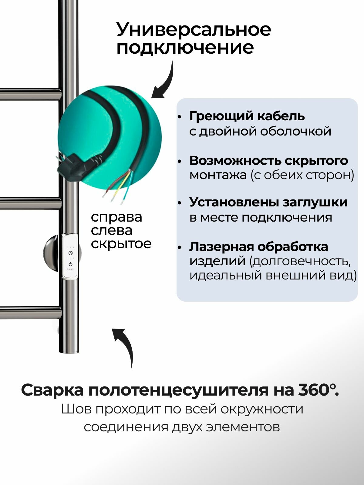 Полотенцесушитель электрический хром Bent Lux лесенка 60 х 40 со скрытым монтажом / правое и левое подключение