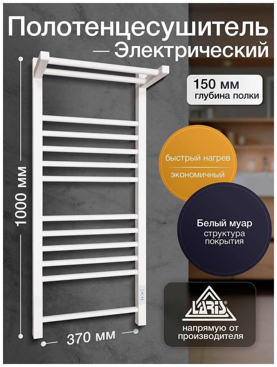Полотенцесушитель электрический Laris Иола с полкой ЧК П13, 370х1000, белый муар, правое подключение (73207685): сравнение цен, характеристики, фото, актуальное наличие и цены.