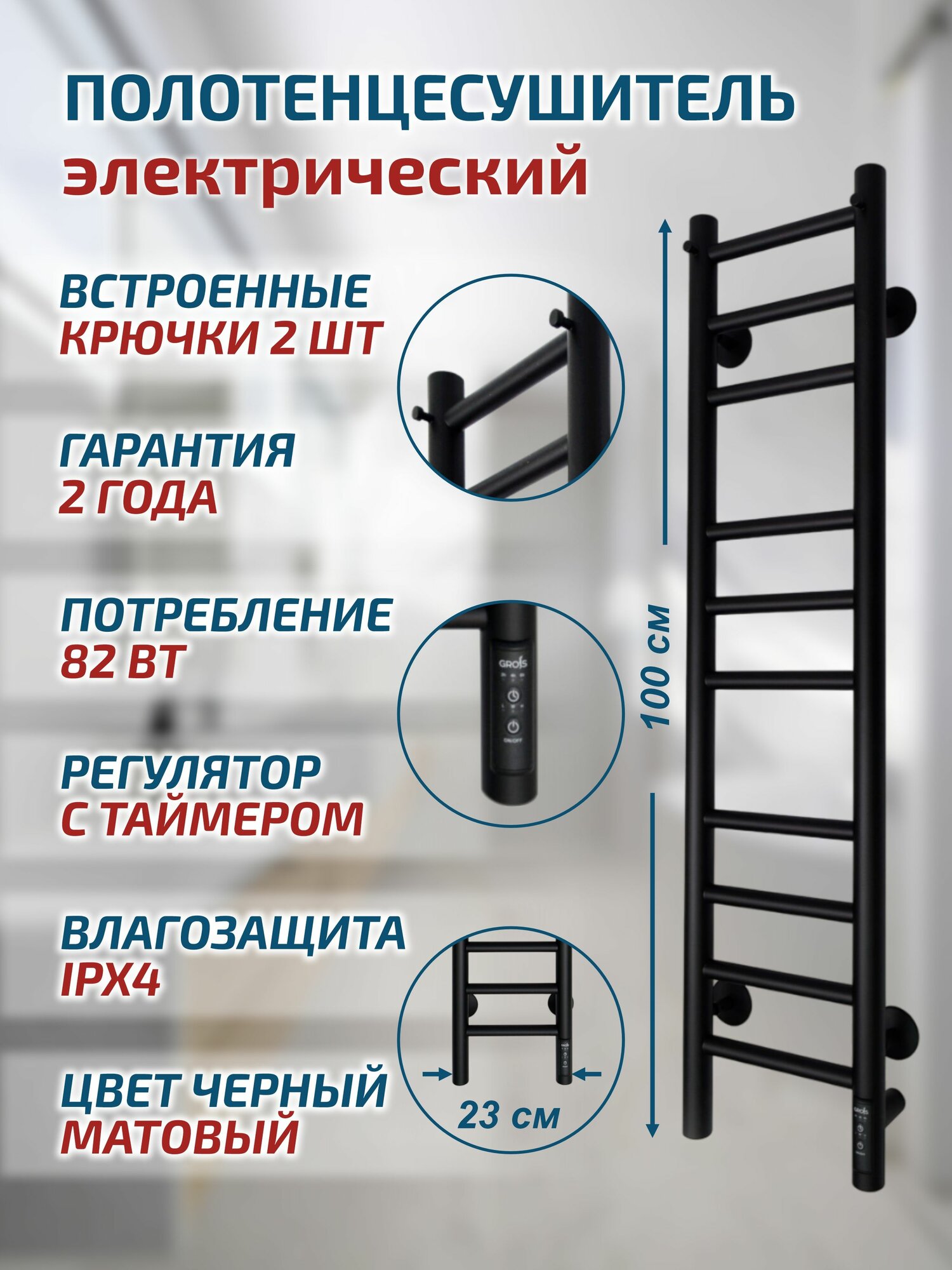 Полотенцесушитель электрический Laura GR-133 200×1000 П10 black mat R -правое подключение: сравнение цен, характеристики, фото, актуальное наличие и цены.