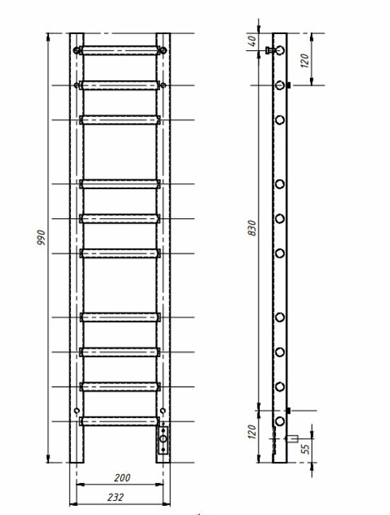 Полотенцесушитель электрический Laura GR-133 200×1000 П10 black mat R -правое подключение