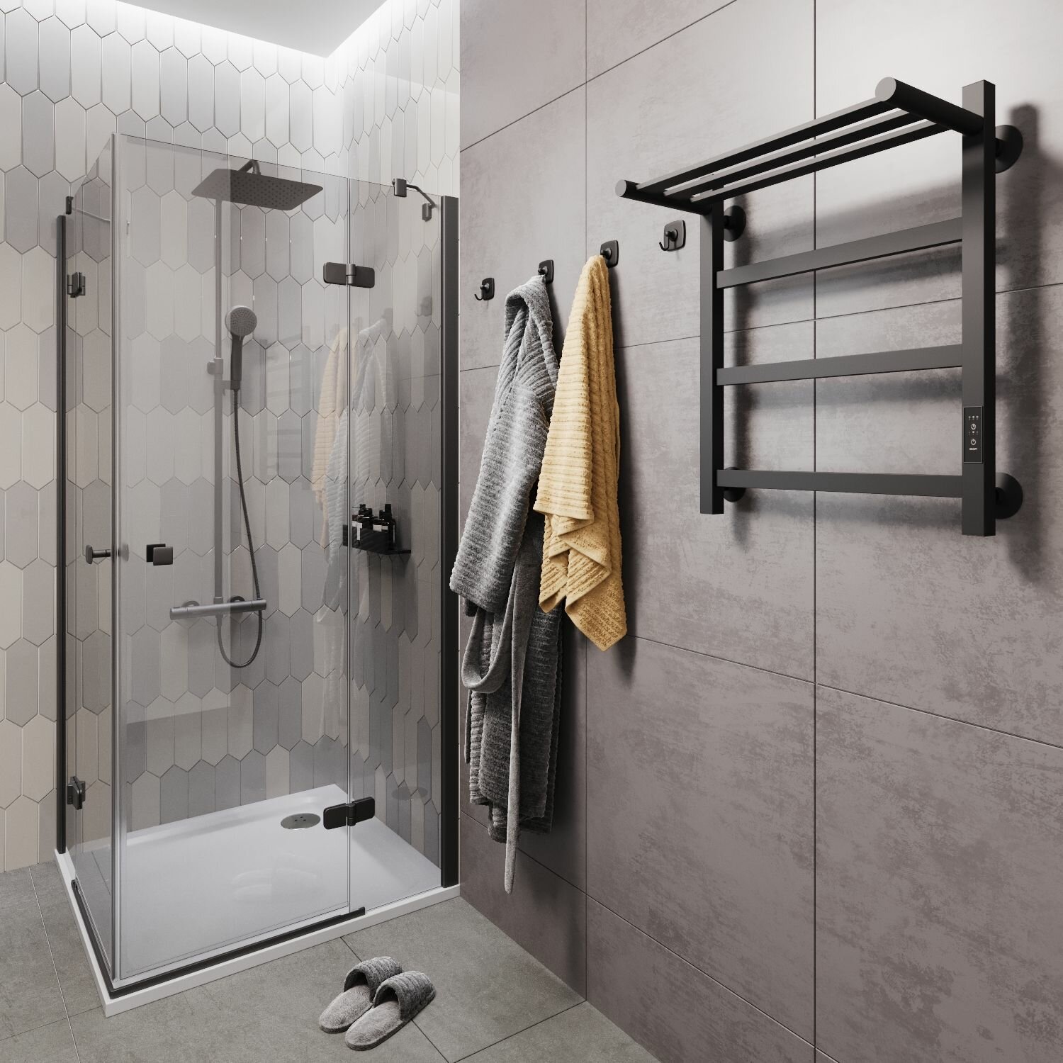Полотенцесушитель электрический Маргроид В81/10 60х50, профильный, с полкой, таймер, черный матовый