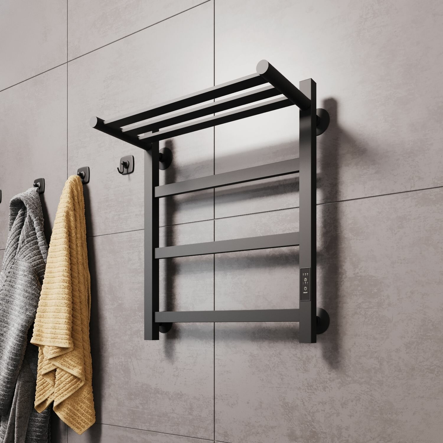 Полотенцесушитель электрический Маргроид В81/10 60х50, профильный, с полкой, таймер, черный матовый: сравнение цен, характеристики, фото, актуальное наличие и цены.