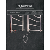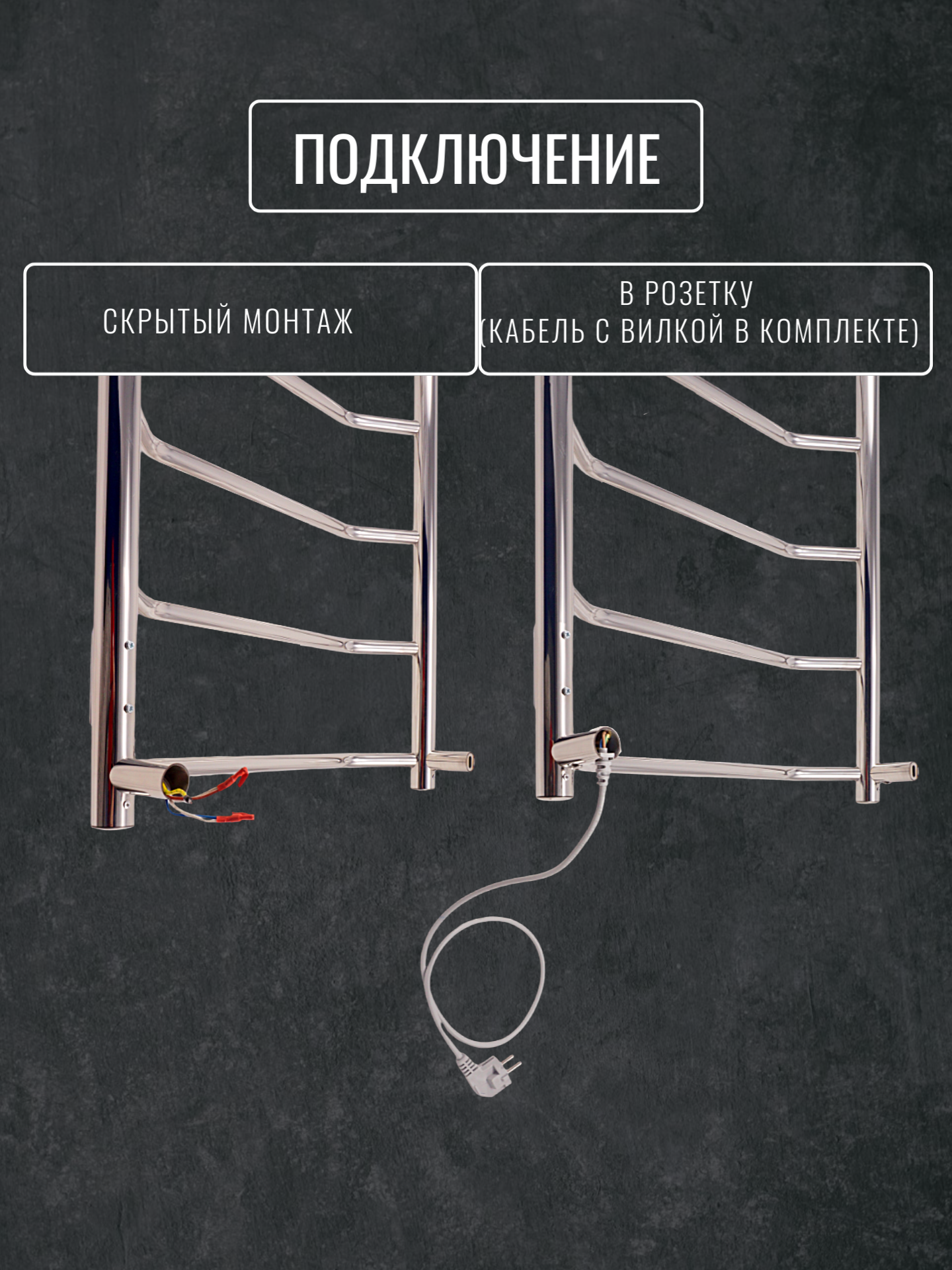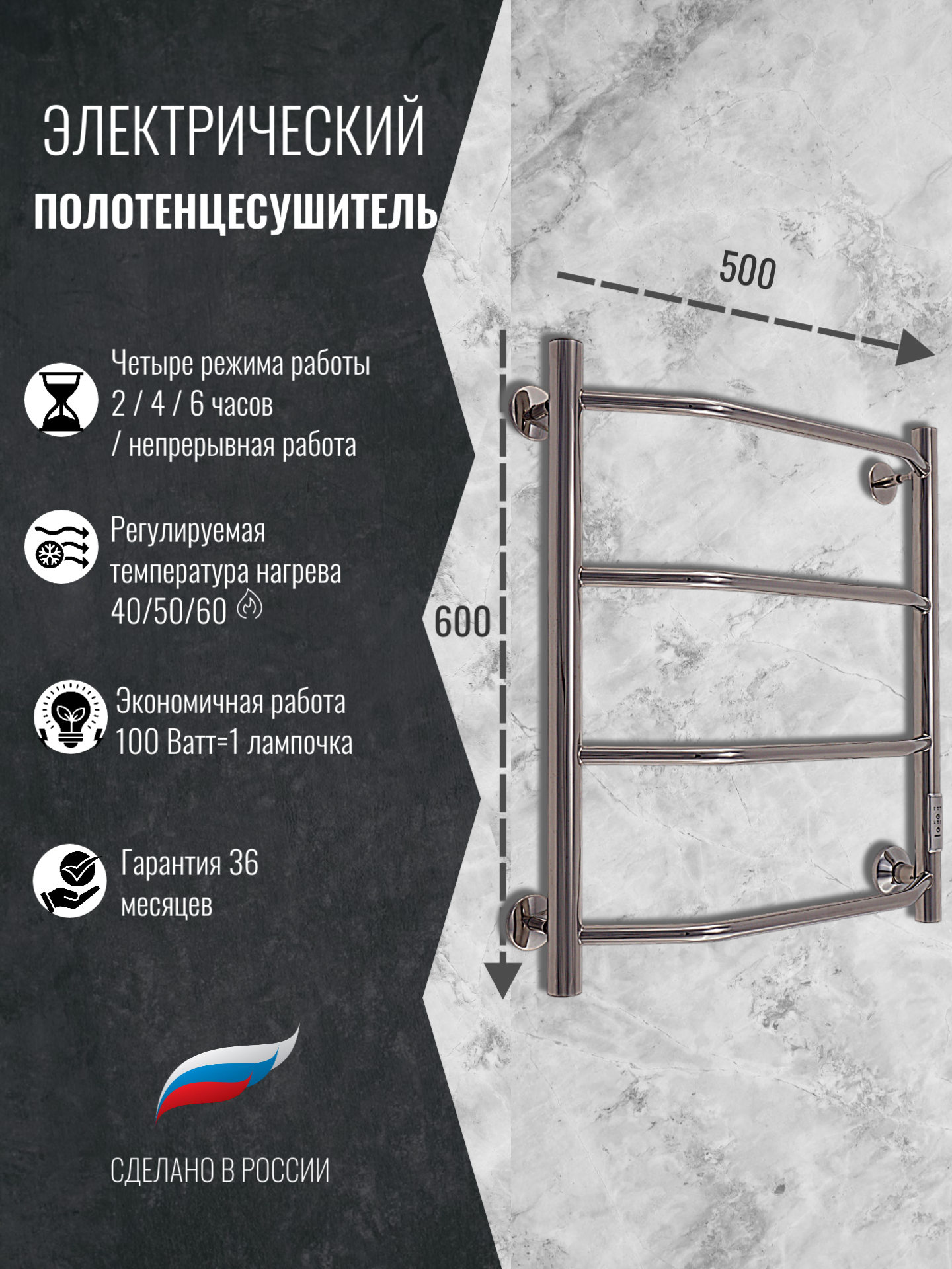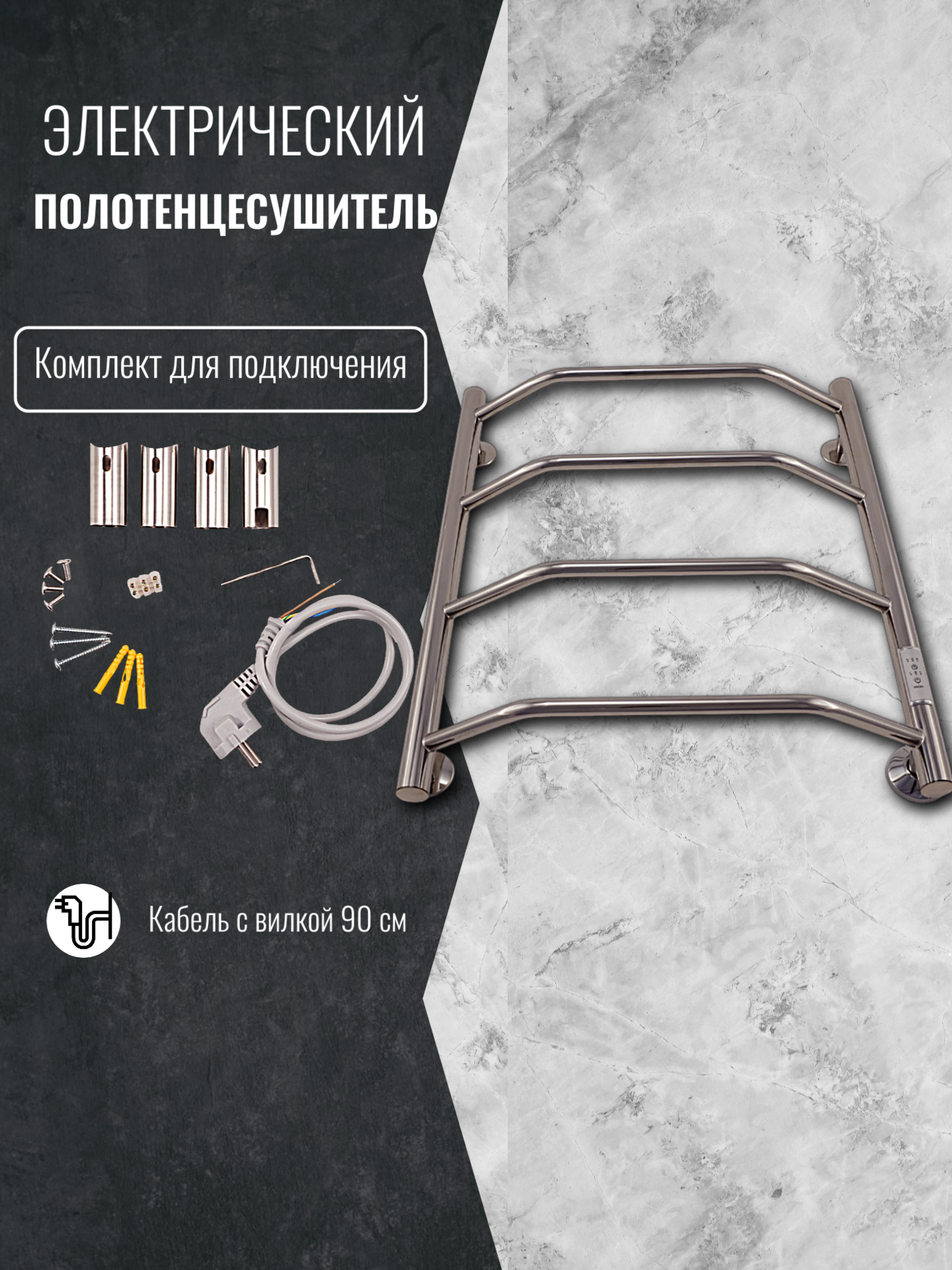 Купить Полотенцесушитель электрический Маргроид 600х500 мм Вид 6 хромированный. Нержавеющая сталь. Кабель с вилкой 90 см. с доставкой по всей России.