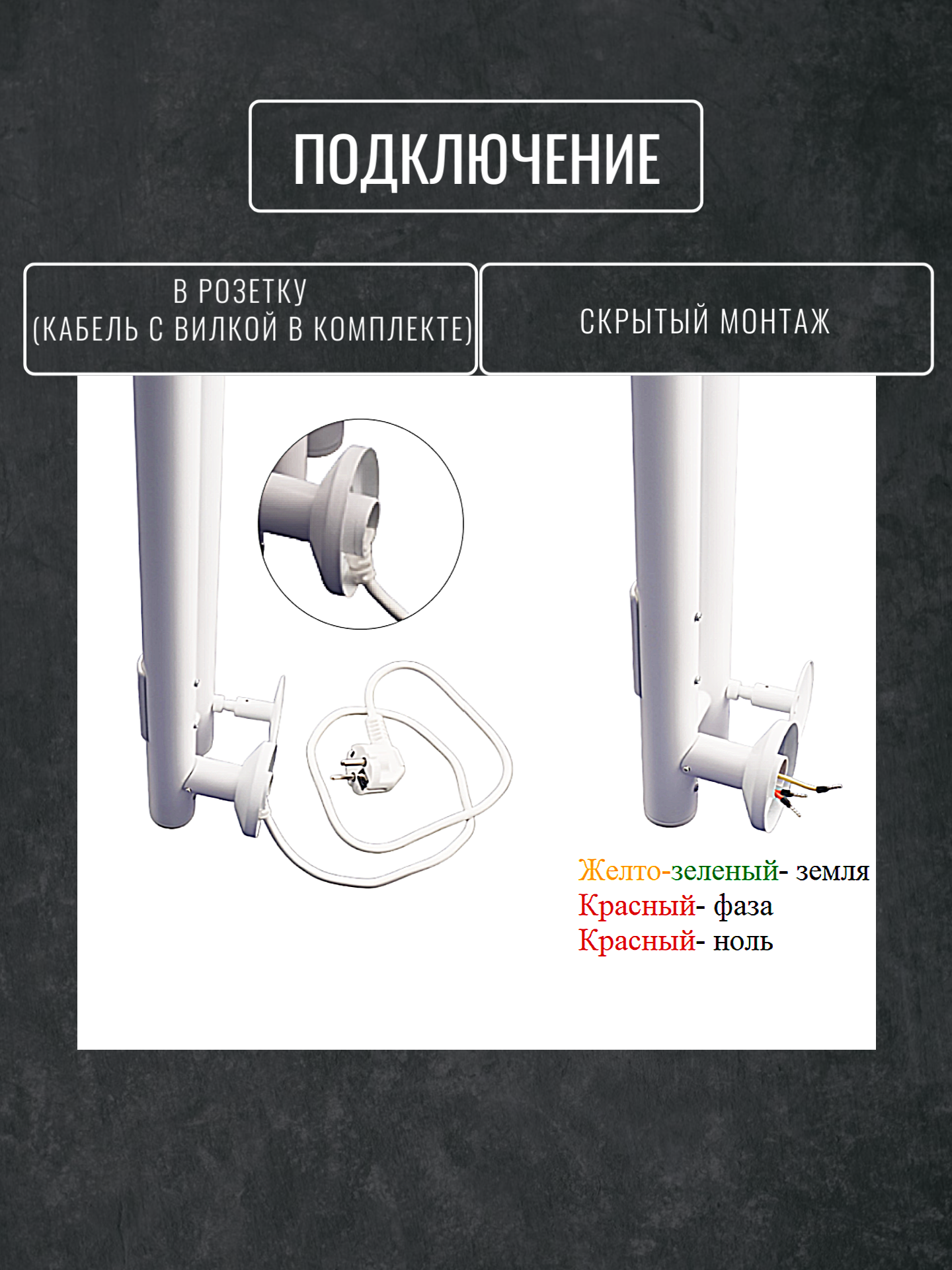 | Подключение | скрытое электрическое соединение, электропровод с вилкой |