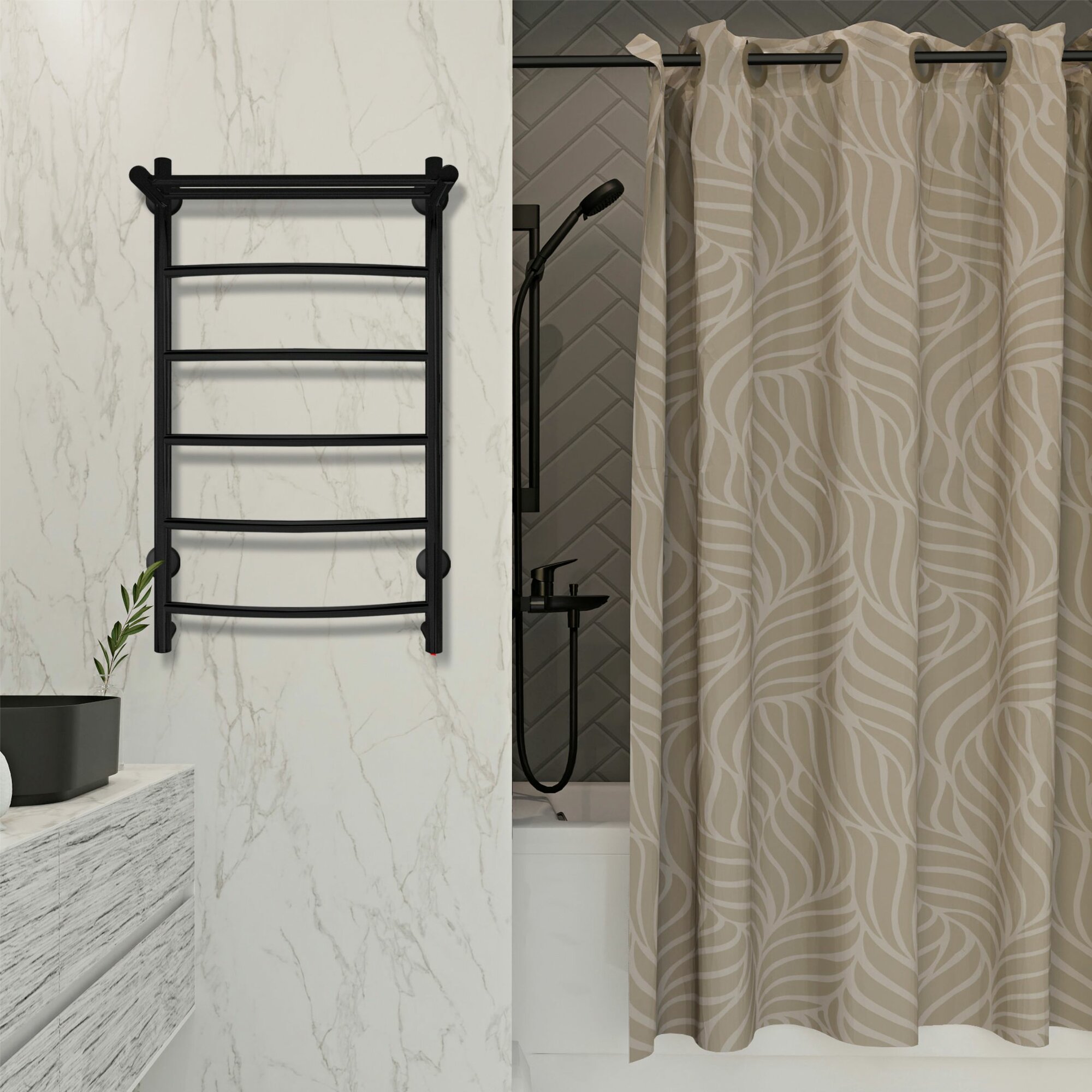 Полотенцесушитель электрический MySpace Joli с полкой 70/40 скрытый монтаж, универсальное подключение, Черный муар: сравнение цен, характеристики, фото, актуальное наличие и цены.