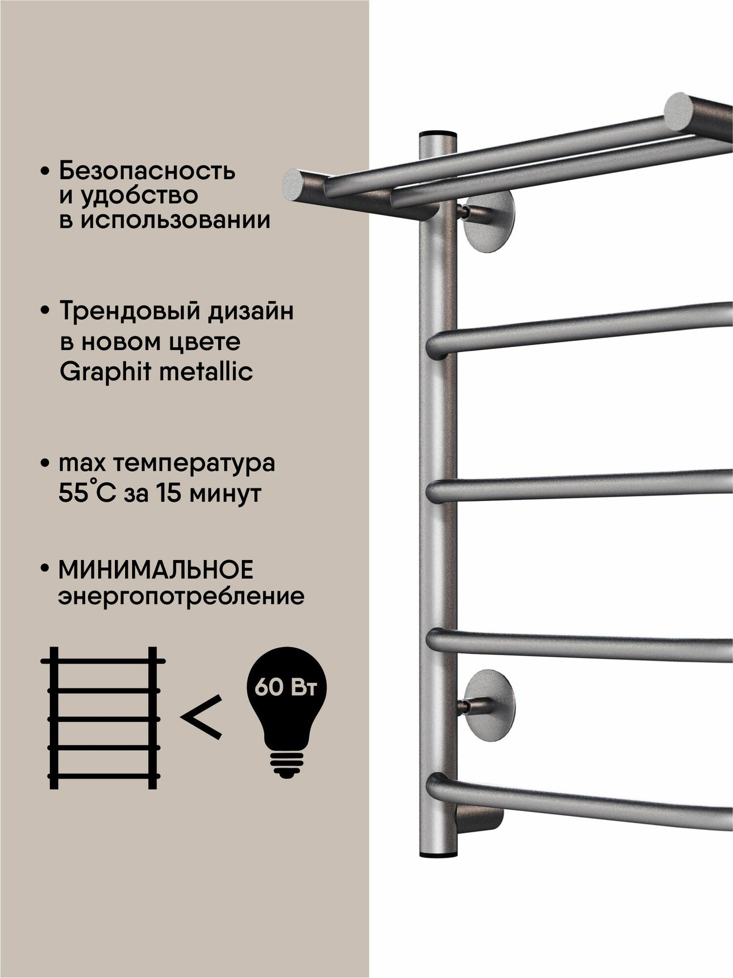 Полотенцесушитель электрический MySpace Temazo 60/40 с терморегулятором, с полкой, графит металлик: сравнение цен, характеристики, фото, актуальное наличие и цены.