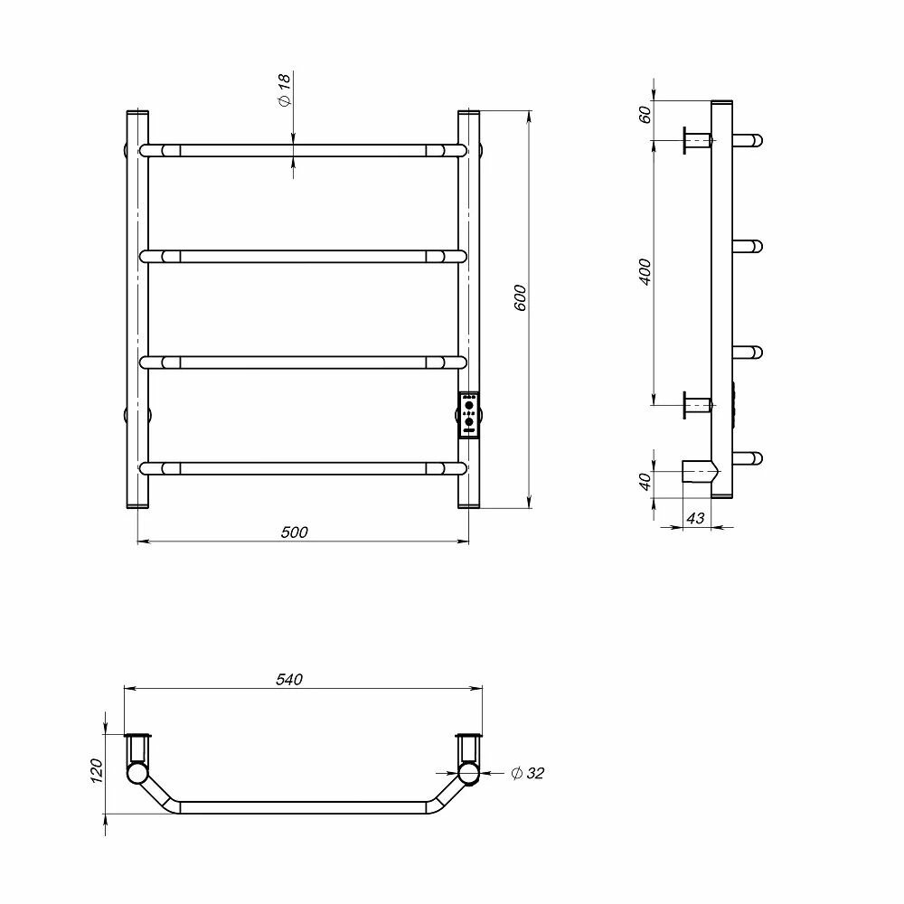 Полотенцесушитель электрический с терморегулятором INDIGO 80/50, квадратная труба, змеевик