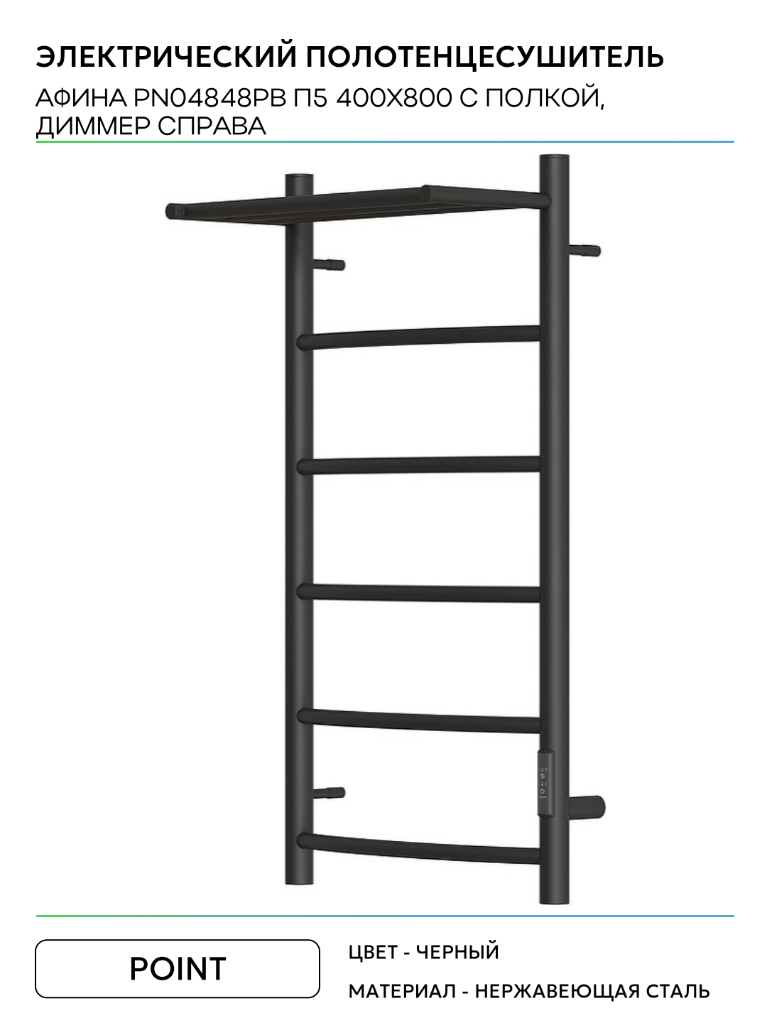 Купить Полотенцесушитель электрический Point Афина 80×43 PN04848PB черный с доставкой по всей России. Полотенцесушитель электрический Point Афина 80×43 PN04848PB черный: сравнение цен, характеристики, фото, актуальное наличие и цены.