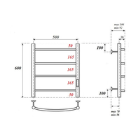 Полотенцесушитель электрический POINT Афина PN04856B П4 500×600 диммер справа, черный