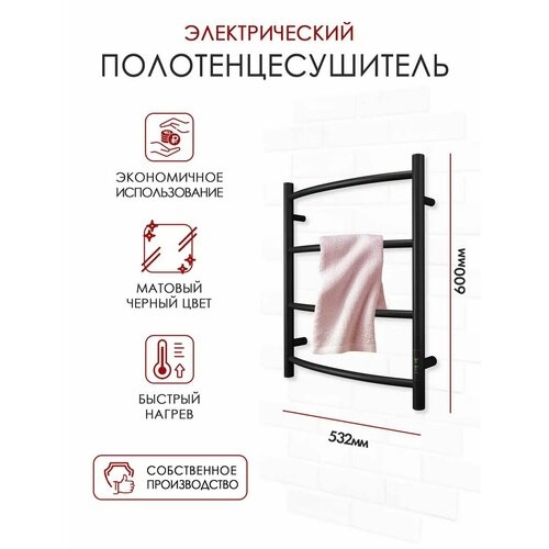 Купить Полотенцесушитель электрический Point Афина PN04856B П4 500×600 диммер справа, черный с доставкой по всей России.