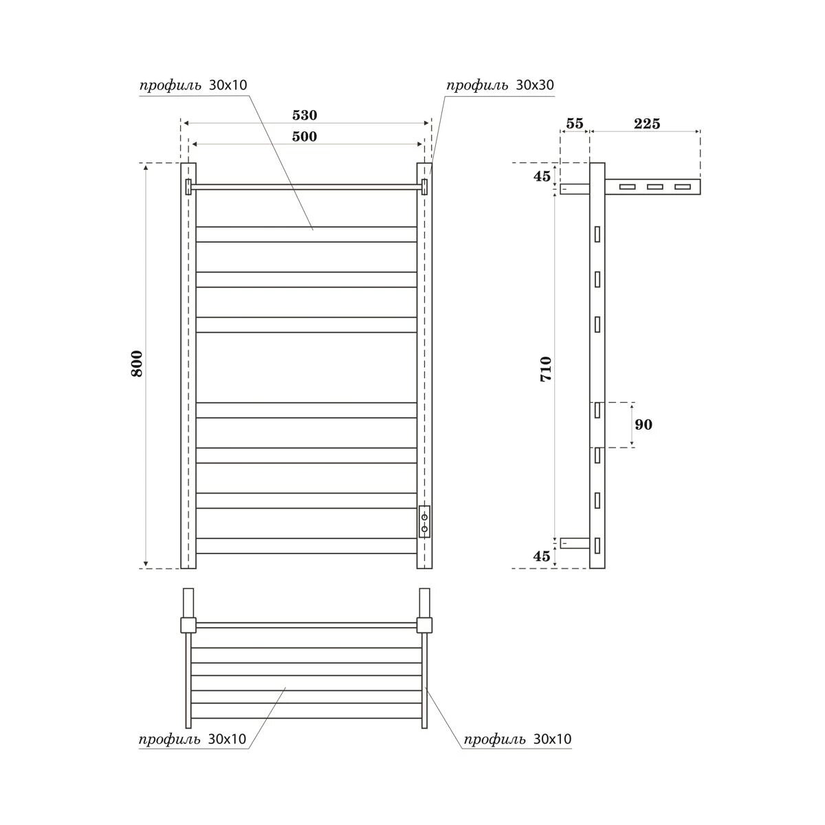 Полотенцесушитель электрический Point Меркурий 80×53 PN83858PB с полкой, черный: сравнение цен, характеристики, фото, актуальное наличие и цены.
