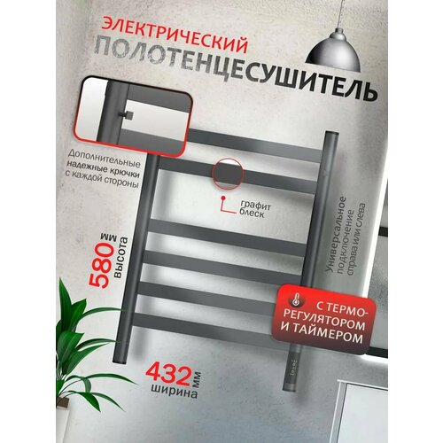 Купить Полотенцесушитель электрический Point Ophite PNOH846KGB П6 400×580 с крючками, диммер справа, графит блеск с доставкой по всей России.