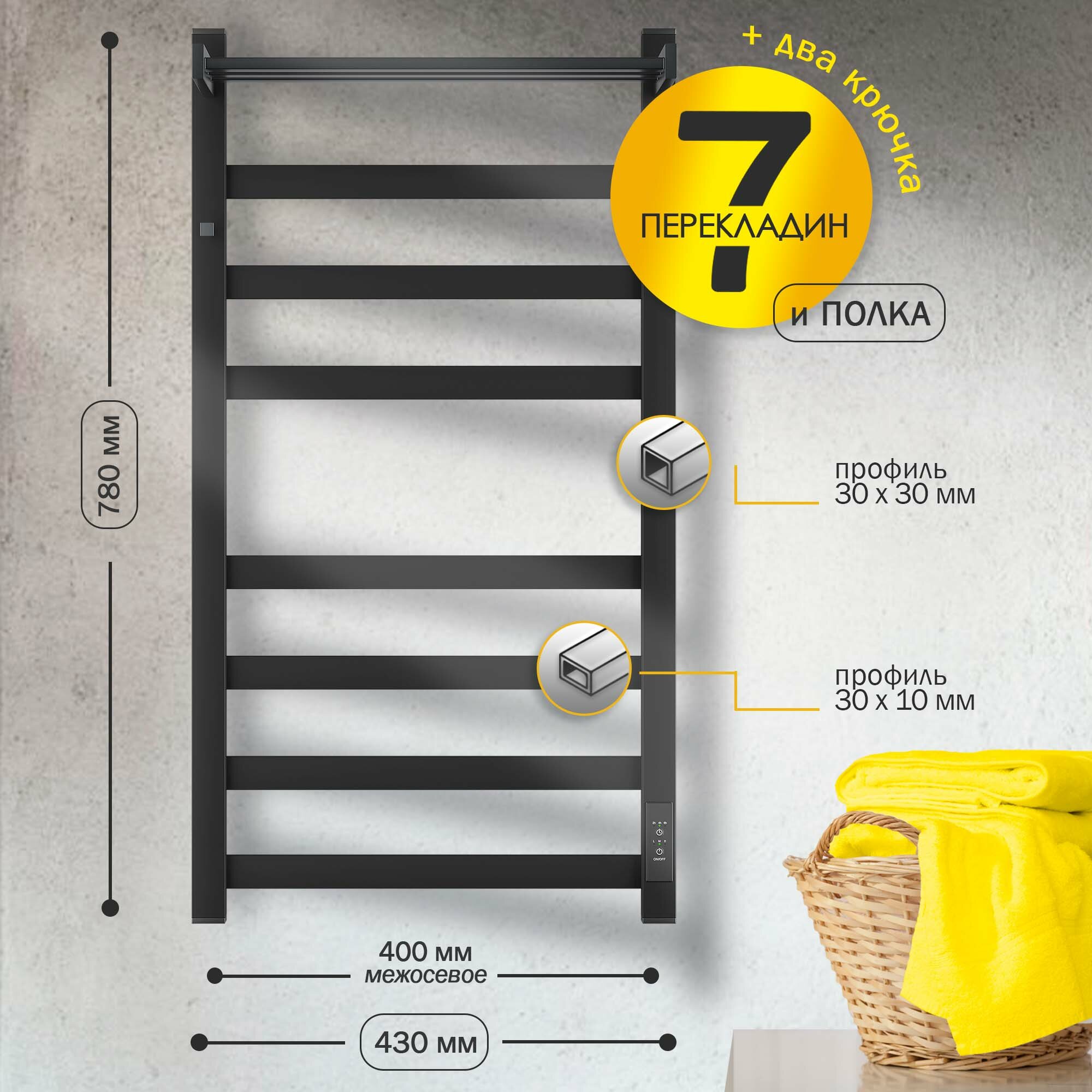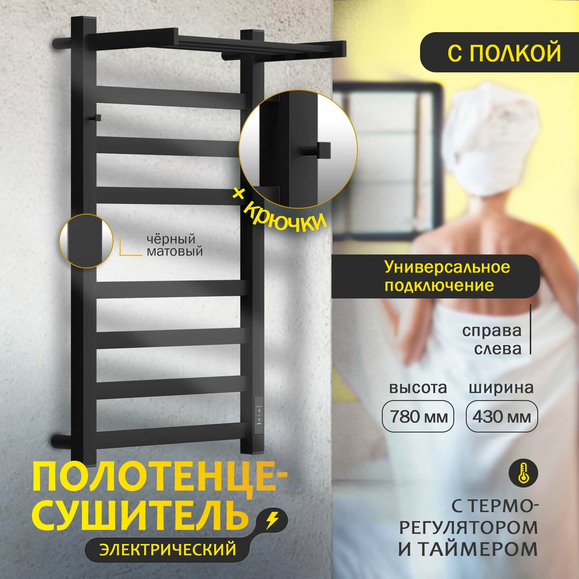 Полотенцесушитель электрический Point Palladium PNPD848PKB П7 400×780 с полкой, крючками, диммер справа, черный: сравнение цен, характеристики, фото, актуальное наличие и цены.
