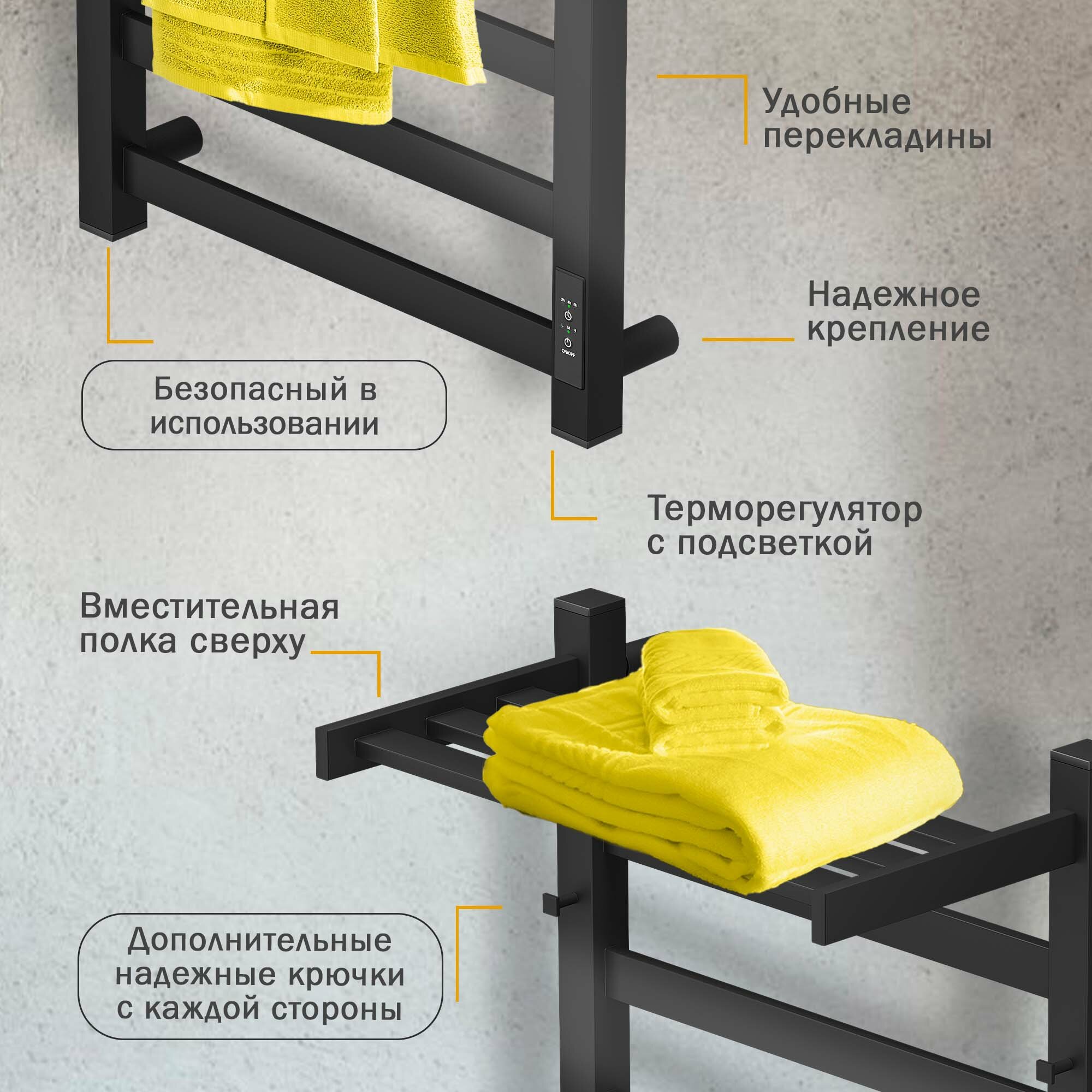 Купить Полотенцесушитель электрический Point Palladium PNPD848PKB П7 400×780 с полкой, крючками, диммер справа, черный с доставкой по всей России.