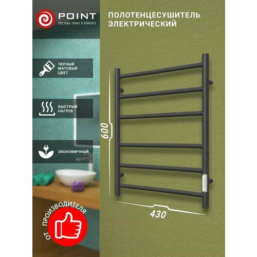 Полотенцесушитель электрический Point PN10846B П6 400×600 диммер справа, черный: сравнение цен, характеристики, фото, актуальное наличие и цены.