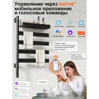 Полотенцесушитель электрический поворотный SIOYIE 450мм 680мм, Wi-Fi и Алисы, нержавеющая сталь черный форма F-образная