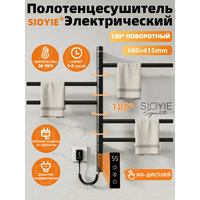 Полотенцесушитель электрический поворотный SIOYIE G63 415мм 680мм , нержавеющая сталь черный форма F-образная