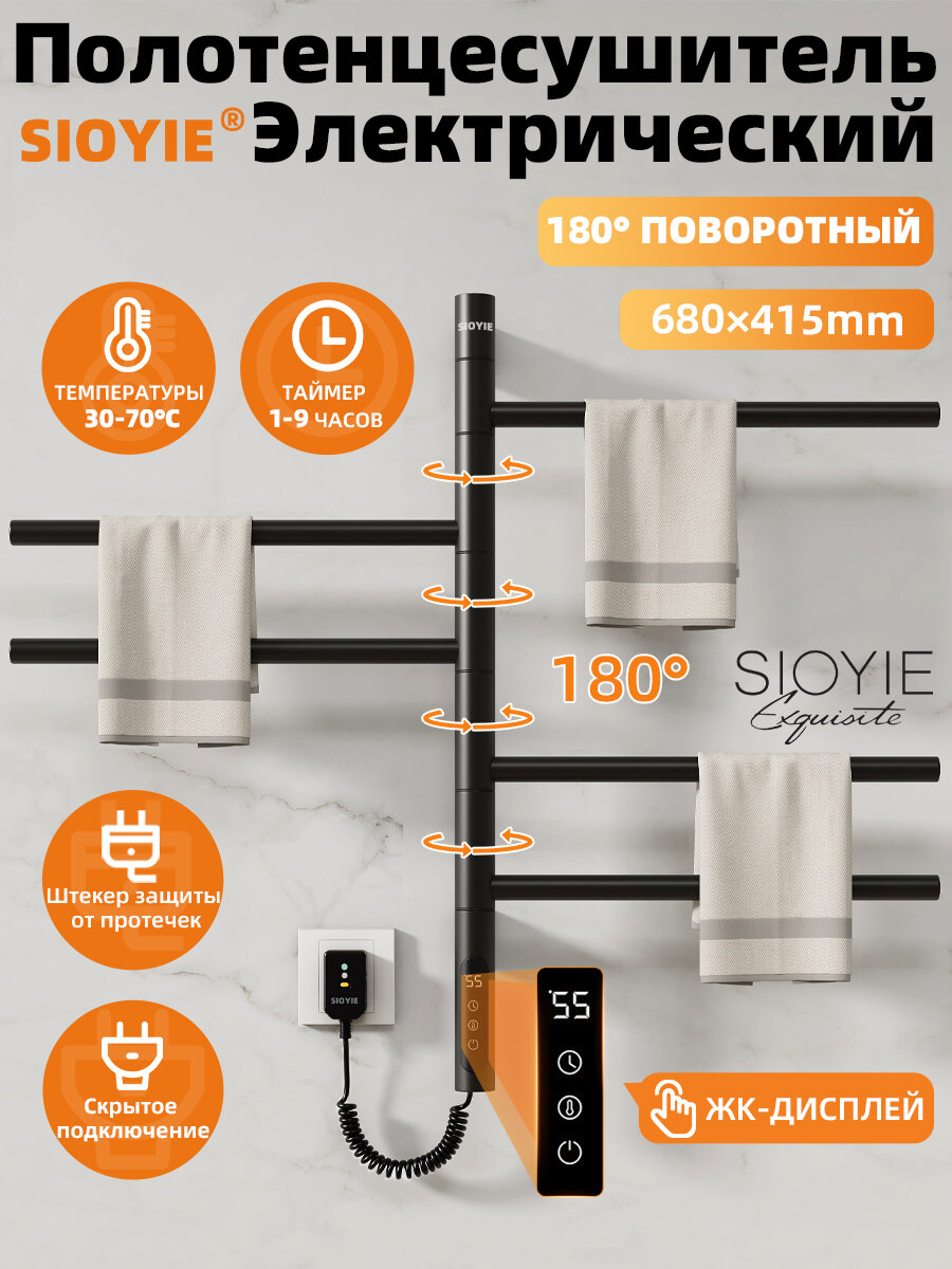 Купить Полотенцесушитель электрический поворотный SIOYIE G63 415мм 680мм , нержавеющая сталь черный форма F-образная с доставкой по всей России.