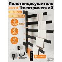 Полотенцесушитель электрический поворотный SIOYIE G68 450мм 675мм , нержавеющая сталь черный форма F-образная