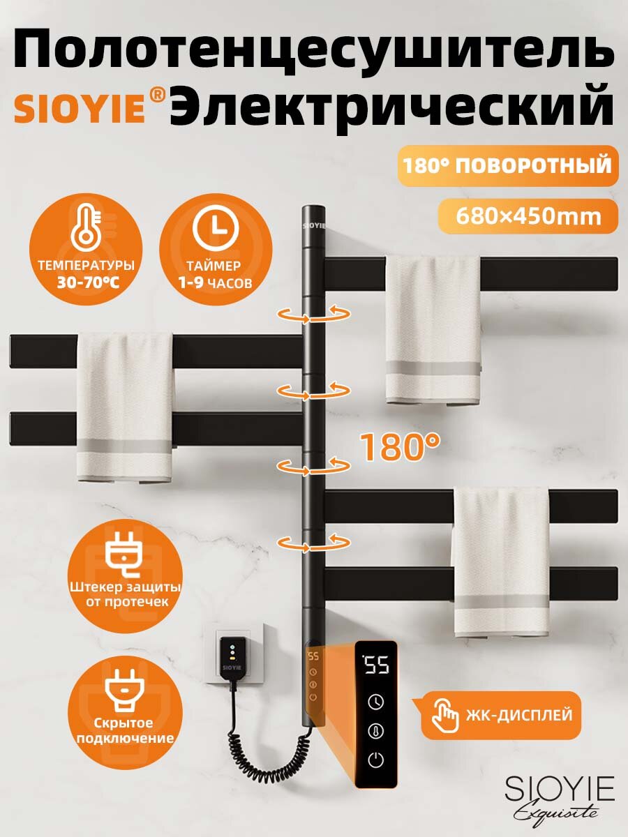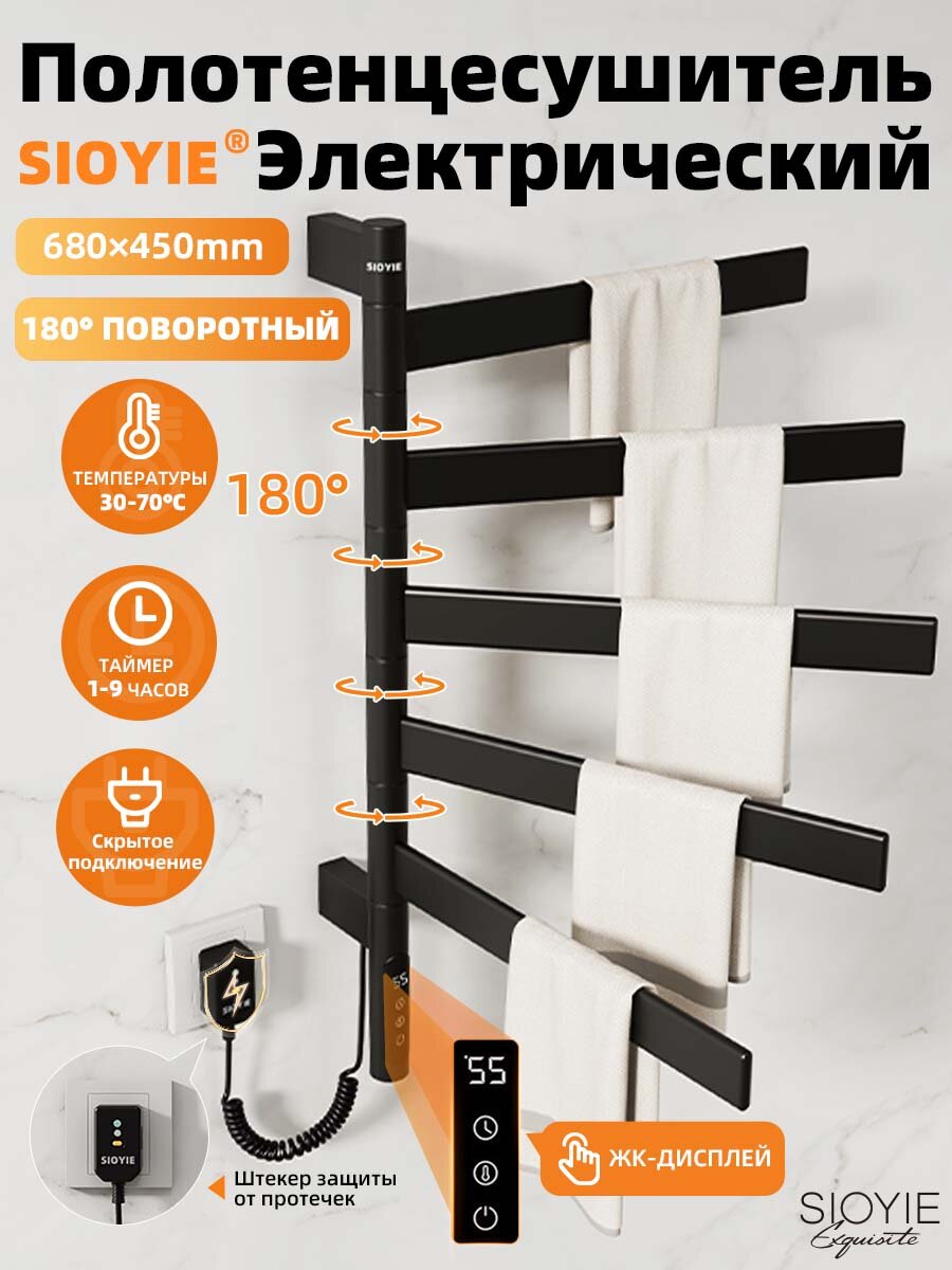 Полотенцесушитель электрический поворотный SIOYIE G68 450мм 675мм , нержавеющая сталь черный форма F-образная: сравнение цен, характеристики, фото, актуальное наличие и цены.