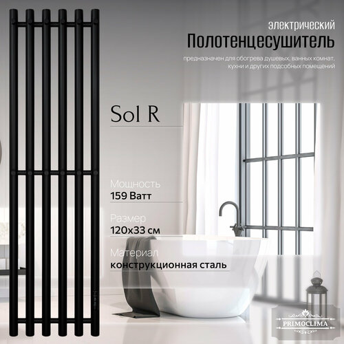 Полотенцесушитель электрический Primoclima Sol R E Black 120х33 см, П6: сравнение цен, характеристики, фото, актуальное наличие и цены.