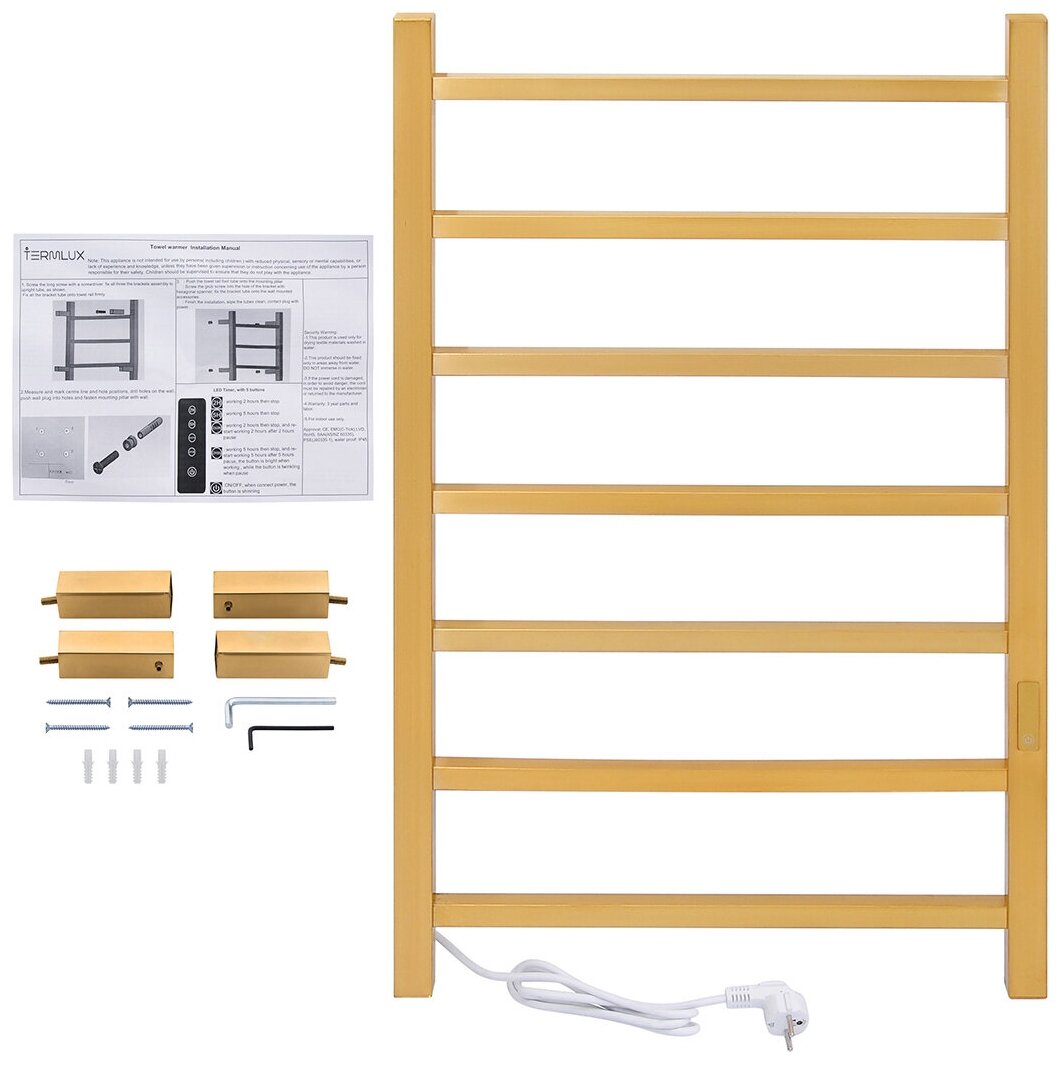 Купить Полотенцесушитель электрический с дисплеем TERMLUX TLHQ08G-7LE30(19) (Лесенка, 800х500х110, 7-перекладин, 80 Вт, левый тэн) с доставкой по всей России. Полотенцесушитель электрический с дисплеем TERMLUX TLHQ08G-7LE30(19) (Лесенка, 800х500х110, 7-перекладин, 80 Вт, левый тэн): сравнение цен, характеристики, фото, актуальное наличие и цены.