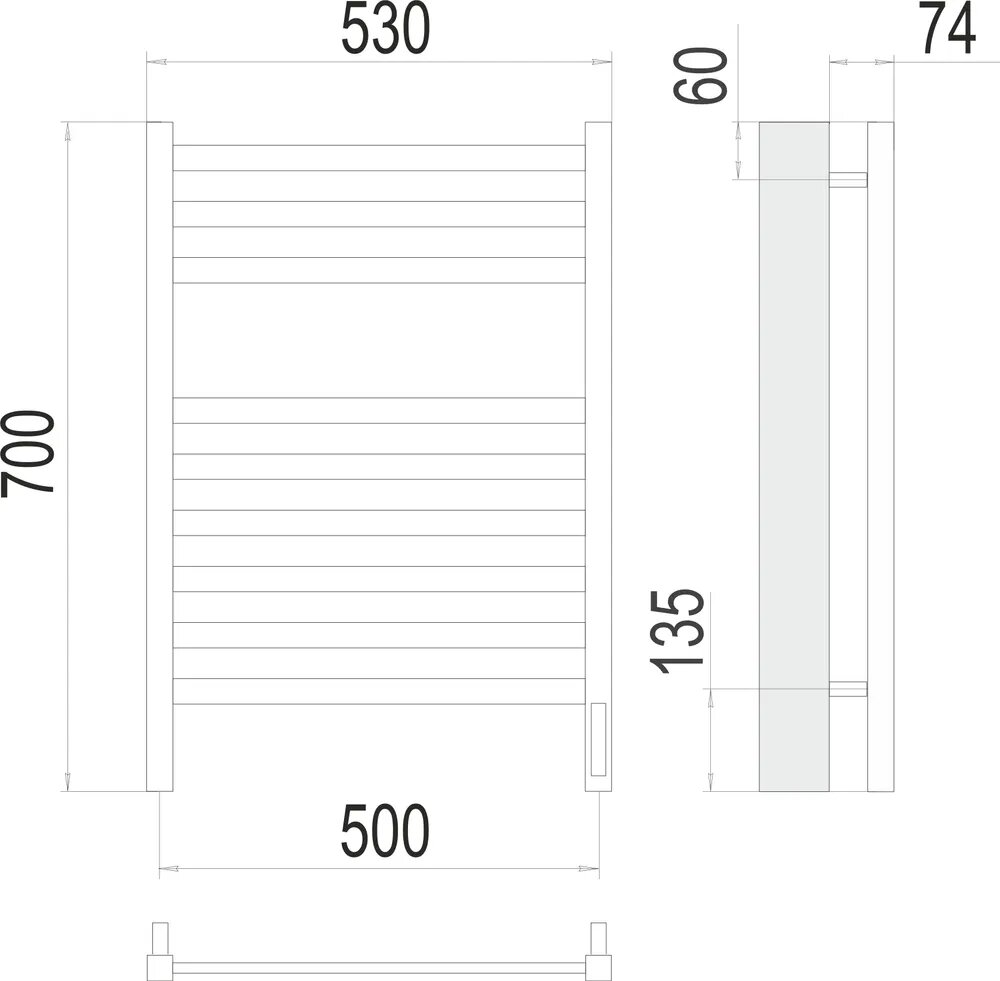 Полотенцесушитель электрический с таймером TERMINUS (Терминус) Енисей П9 500х700мм, межосевое расстояние 500мм, высота 700мм, сверхпрочная пищевая нержавеющая сталь, сенсорный диммер 5-ого поколения Quick Touch, 3 температурных режима: сравнение цен, характеристики, фото, актуальное наличие и цены.