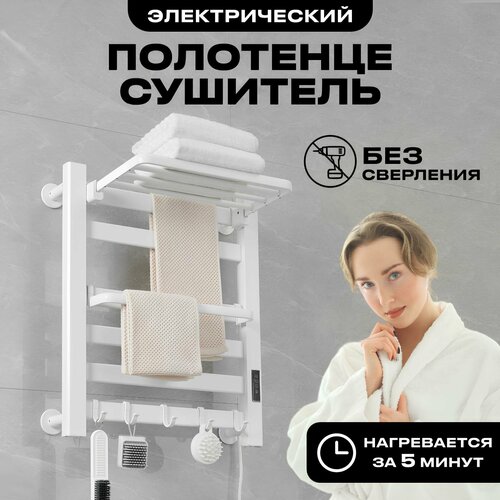 Полотенцесушитель электрический с терморегулятором для ванной комнаты с полкой, вертикальный, горизонтальный, белый