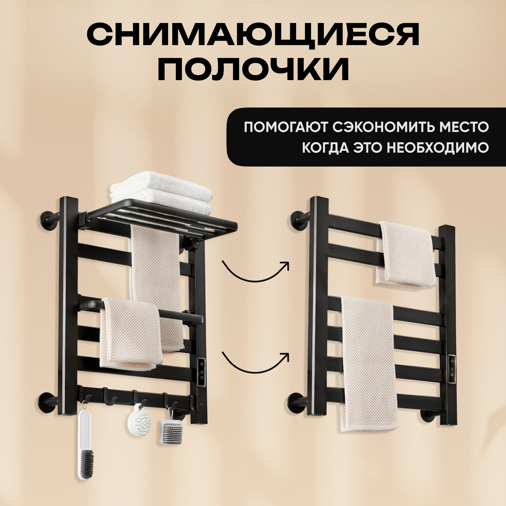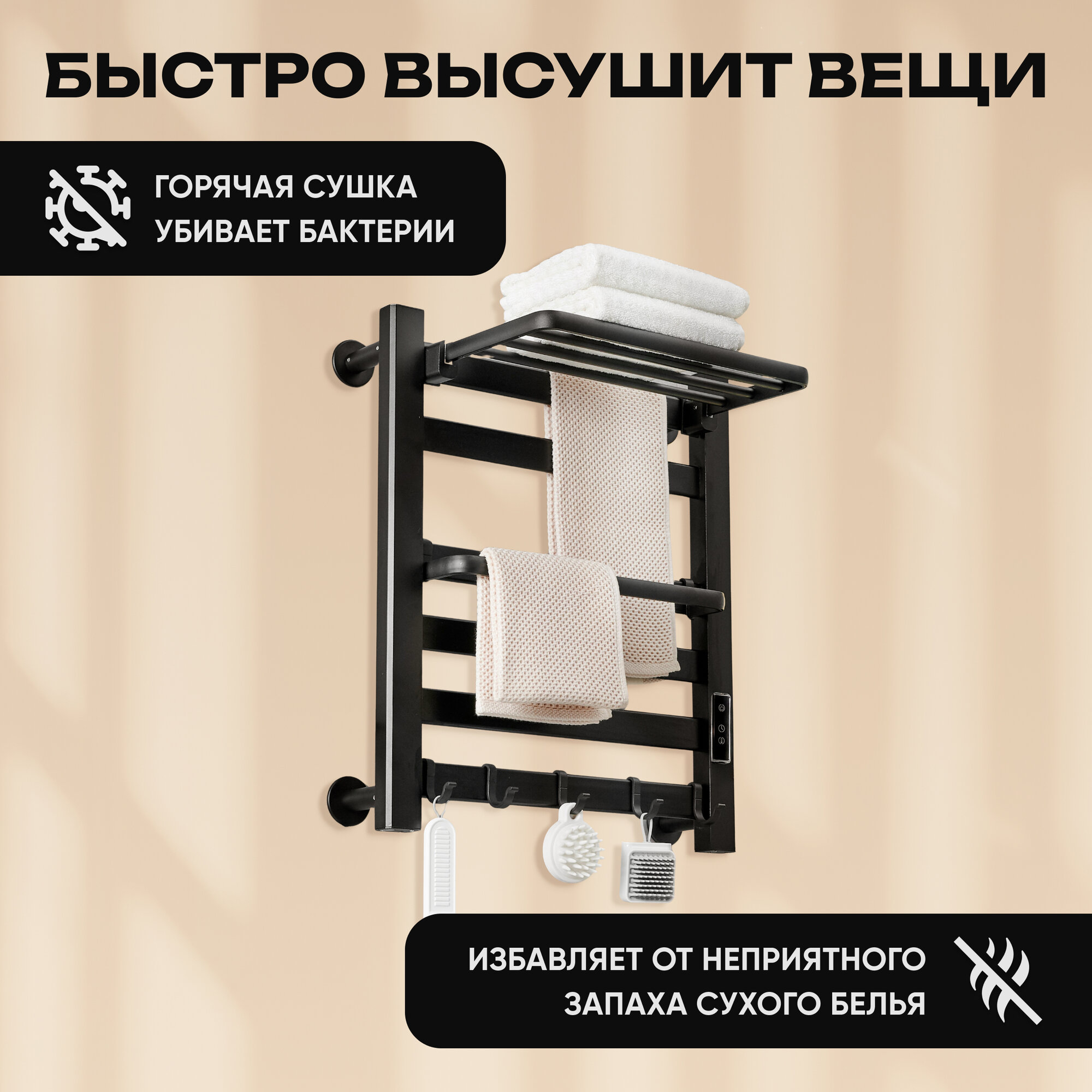 Полотенцесушитель электрический с терморегулятором черный маленький вертикальный для ванной с полкой WIEKK: сравнение цен, характеристики, фото, актуальное наличие и цены.