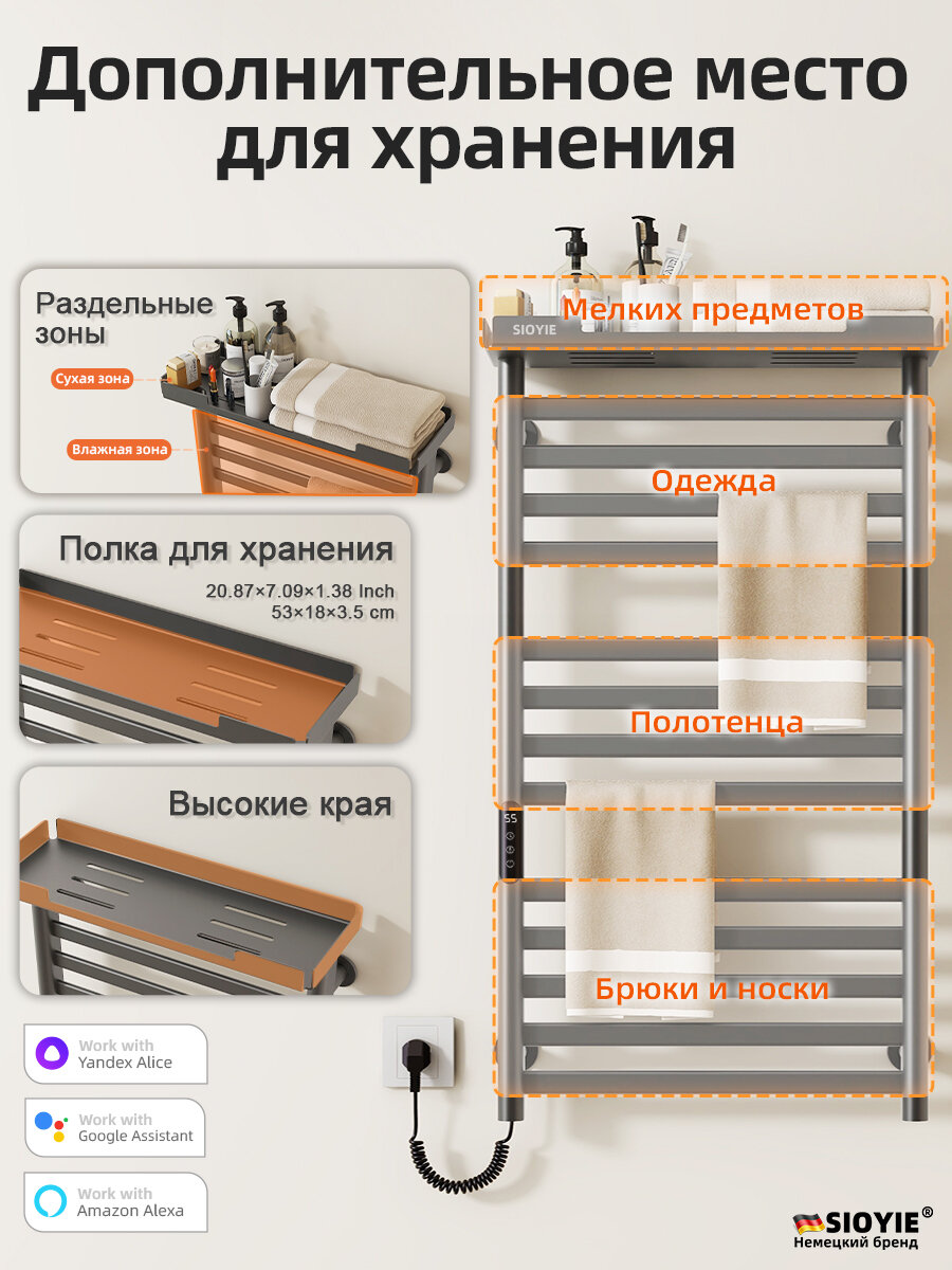Полотенцесушитель электрический SIOYIE YV7ULTRAW 530мм 950мм с терморегулятором серый подключение слева форма: сравнение цен, характеристики, фото, актуальное наличие и цены.