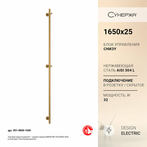 Полотенцесушитель электрический Сунержа Аскет 1650 Золотой Шёлк