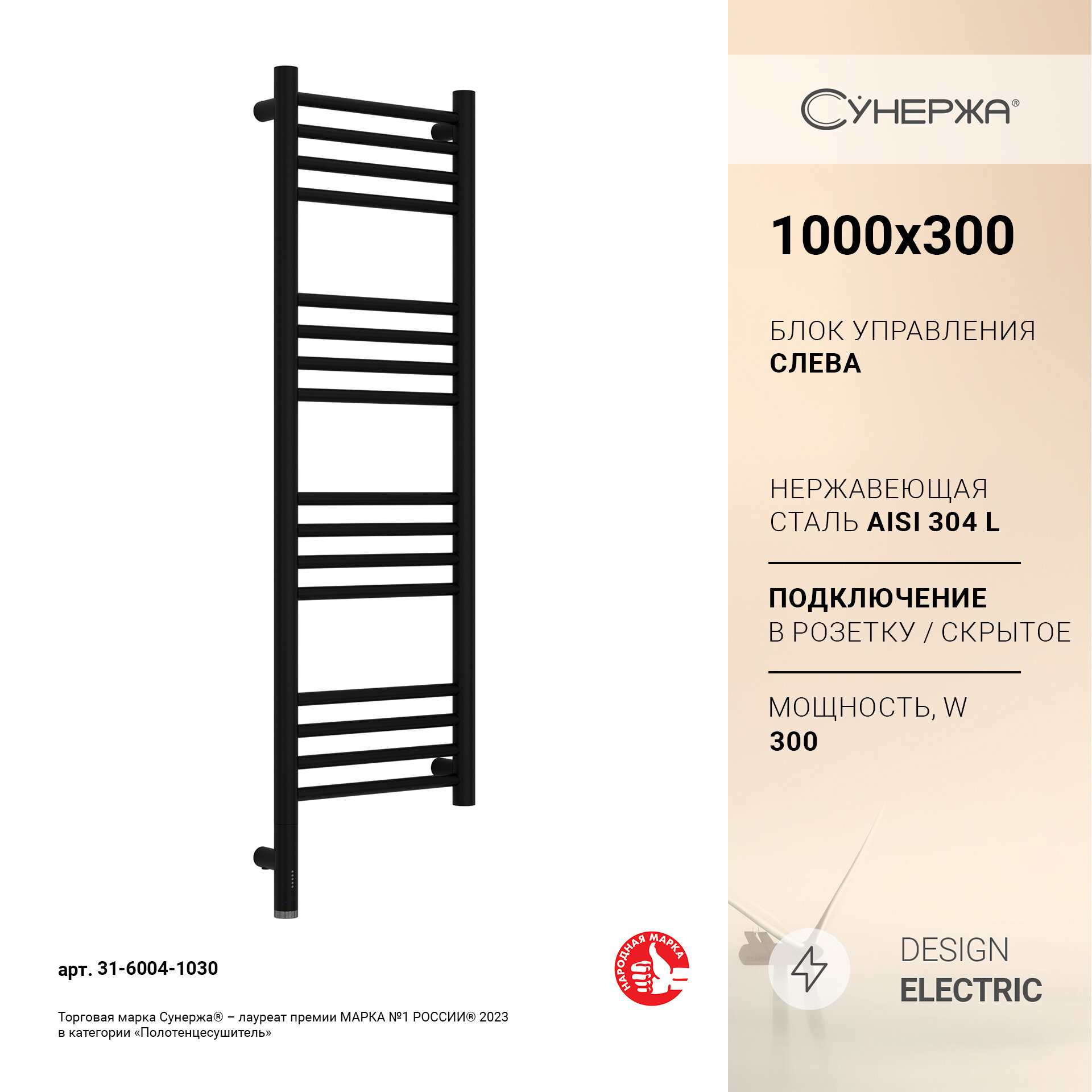 Полотенцесушитель электрический Сунержа Богема 3.1 прямая 1000х300 МЭМ левый Матовый чёрный: сравнение цен, характеристики, фото, актуальное наличие и цены.