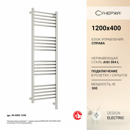 Полотенцесушитель электрический Сунержа Богема 3.1 прямая 1200х400 МЭМ правый Без покрытия
