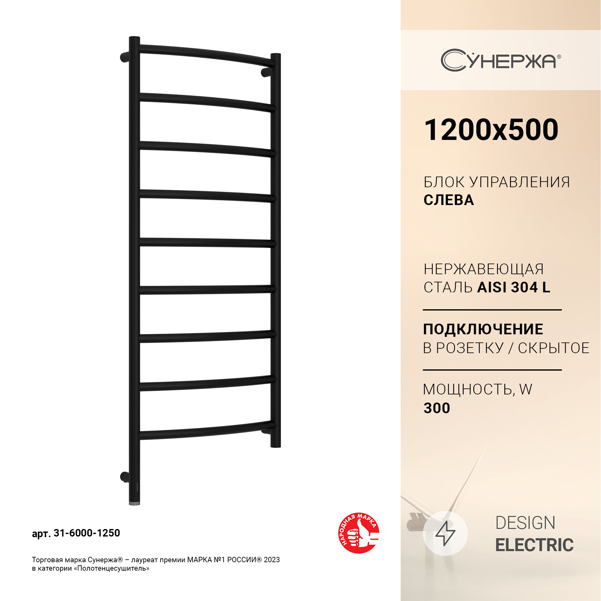 Полотенцесушитель электрический Сунержа Галант 3.1 1200х500 МЭМ левый Матовый чёрный: сравнение цен, характеристики, фото, актуальное наличие и цены.